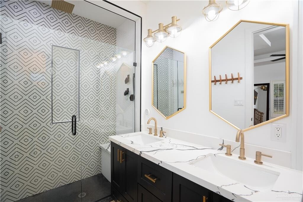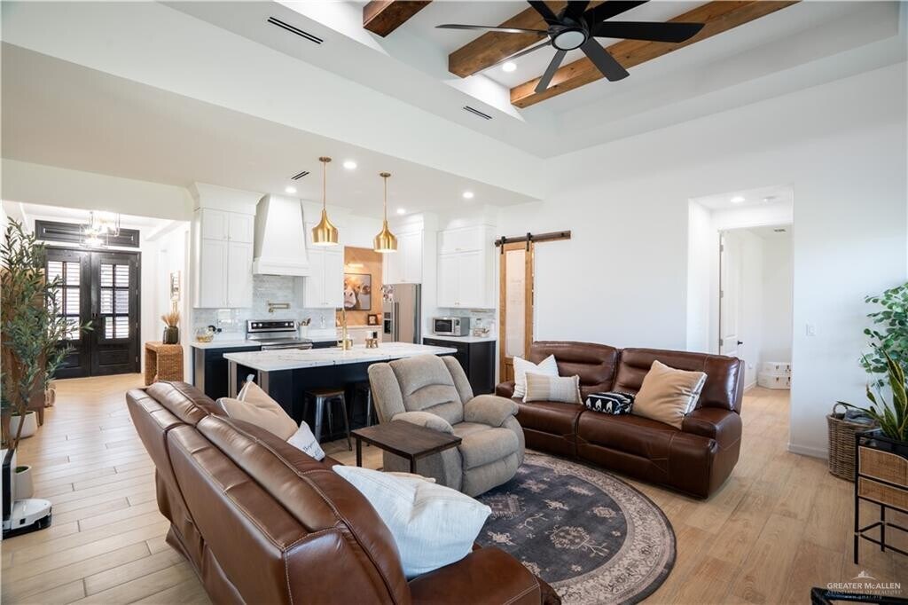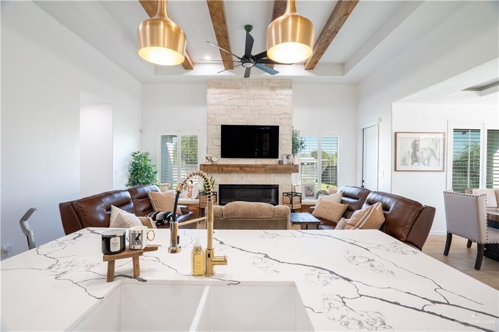 Modern farm house of your dreams is now available in Edinburg TX! In the exclusive gated community of Windsor Estates,this spacious 3 bedroom 2.5 bathroom plus a bonus office room is exactly what you have been waiting for. Designed with careful thought,this gorgeous home offers several upgrades to your everyday life. Plantation shutters throughout provide efficiency in cooling and a sleek look to the home,equipped with top of the line appliances and a tankless water heater. The garage has been upgraded with epoxy flooring,custom faux wood beams in the living area elevate the space,beautiful marble like quartz countertops wrap the kitchen with elegant tile backsplash and even a pot filler! The beautiful electric fireplace encased in floor to ceiling limestone adds that extra warmth and wow factor. Let's talk about the potential you have with a spacious backyard,possibilities are endless,build a pool or add a pergola to relax in the afternoons. You don't want to miss this home!