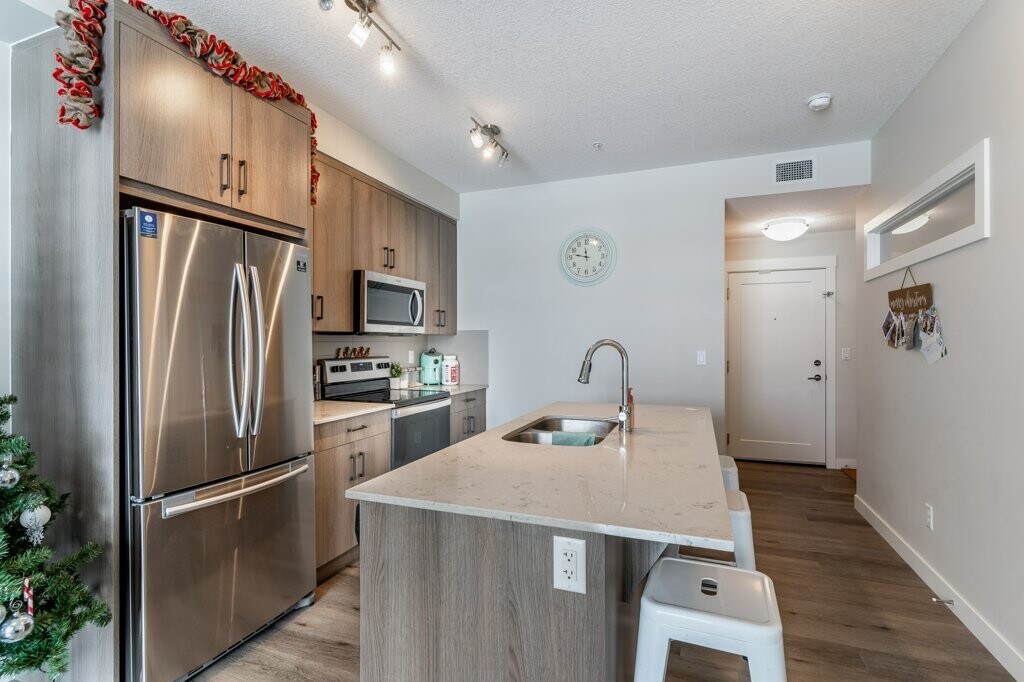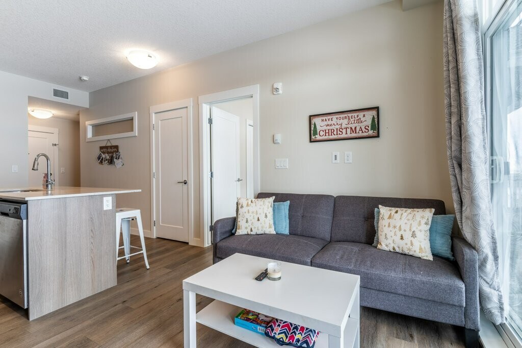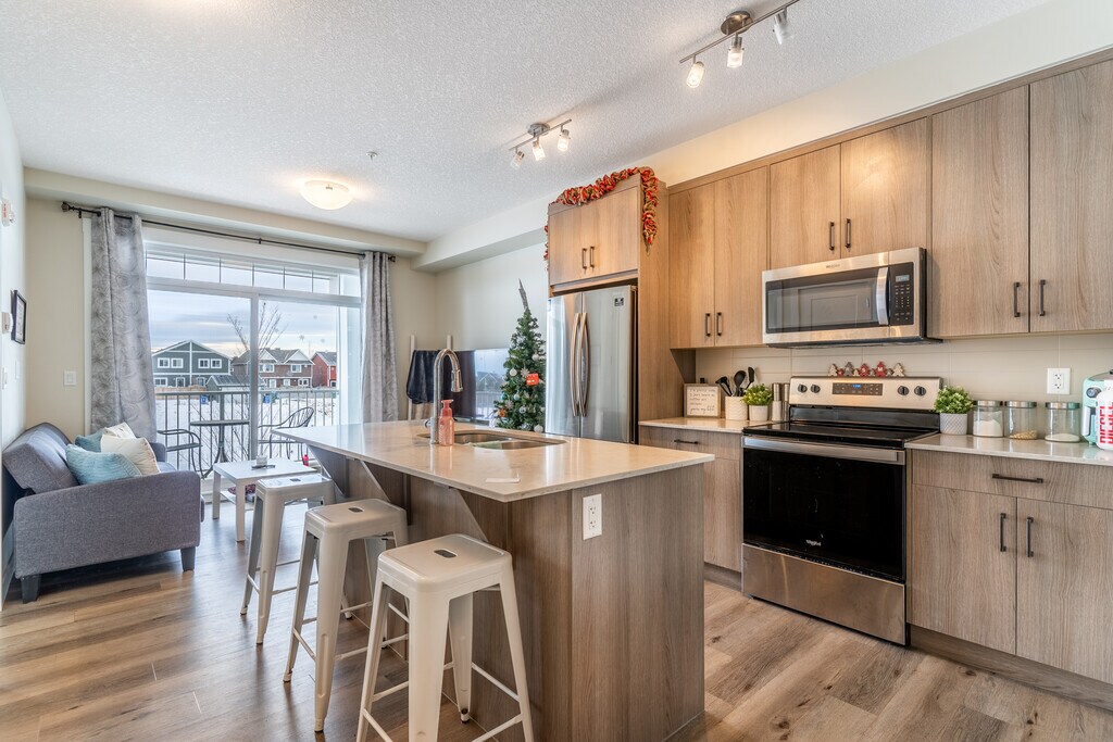 Welcome to Auburn Bay where you have all the amenities at your fingertips. Walking distance to the grocery stores, close to schools, shopping, transit, south Calgary Campus, the YMCA and more! ABOUT THIS UNIT: Available July 1, 2025 with early possession in June. Rent: $1700/month. 1 Bedroom plus Den or the Den can be used as a 2nd bedroom. 1 Full 4 Piece Bathroom Utilities: Heat and water are included. Tenants are responsible for their own electricity and internet/cable. 1 assigned underground parking spot included. 1 assigned storage locker included. Balcony facing field space UNIT FEATURES: Bright open concept with 9 foot ceilings Elegant Quartz countertops Upgraded Stainless Steel appliances (Fridge, Range, Dishwasher, Microwave) Upgraded LVP Flooring In-suite Laundry with stacked washer and dryer BUILDING FEATURES: 4 Story building with elevator Well managed building complex Newer Building, built 2018 Notes: Pets are negotiable and require Board approval with a pet fee