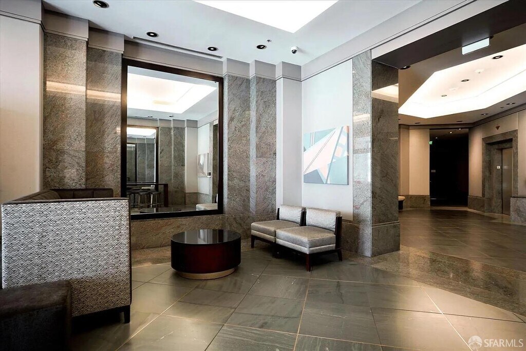 This stunning top floor high ceiling corner penthouse has been beautifully remodeled. The spacious two-bedroom, two-bath floor plan offers exceptional comfort and style, highlighted by breathtaking panoramic city views and an expansive wraparound balcony ideal for indoor-outdoor living. Floor-to-ceiling windows in every room flood the home with natural light and it features marble flooring throughout the kitchen and living areas, and hardwood floors in both bedrooms. The generously sized primary suite includes a large walk-in closet with custom organizers, while high ceilings in the living room and bedrooms enhance the sense of space and light. In-unit laundry, custom window shades and lighting. Parking is available for an additional fee. Building amenities include a 24-hour doorperson and front desk staff, ensuring convenience and security. Museum Parc offers an unbeatable location in the heart of the city, featuring a beautifully maintained community garden and immediate access to world-class attractions. Just steps away are the Moscone Center, Yerba Buena Gardens, SFMOMA, and an array of fine dining options. Commuting is effortless with multiple BART and Muni stations along Market Street within walking distance, and easy highway access. Whole Foods is located just one block away, and Safeway within walking distance. MLS # 426096169