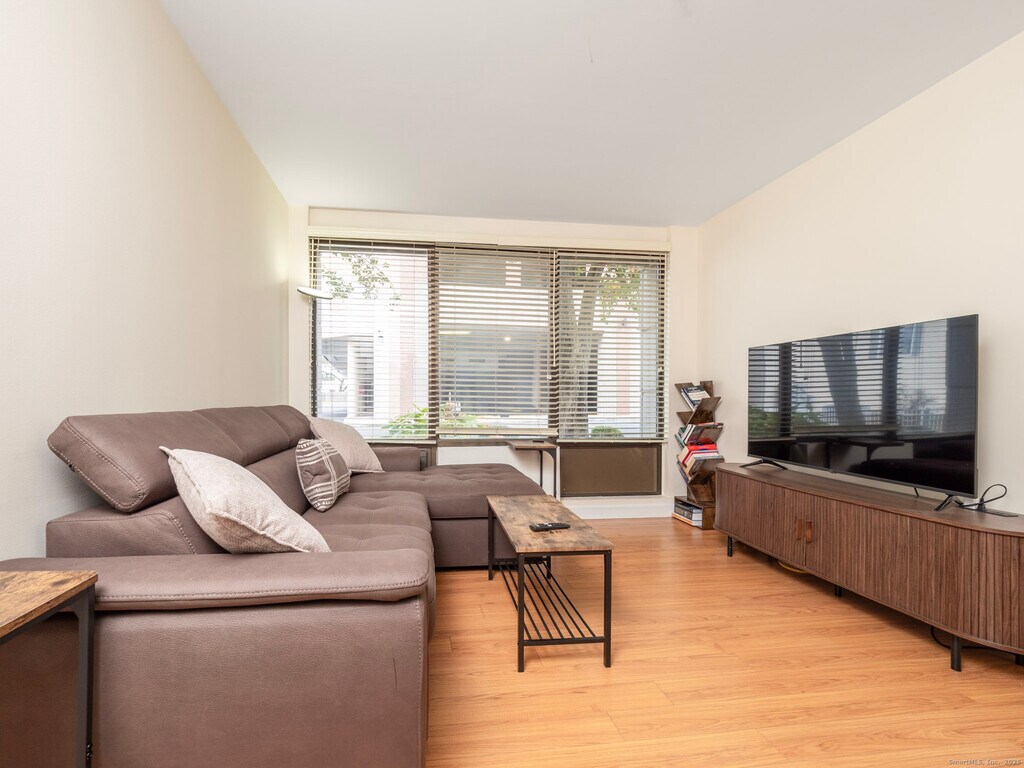 Call for Availability - Discover this move-in-ready one-bedroom condo perfectly situated in the heart of Downtown Stamford. Located on the first floor, this unit offers a bright and inviting open layout with a well-equipped eat-in kitchen, a spacious living area, and the convenience of an in-unit washer and dryer. Residents enjoy a host of amenities, including a newly updated community patio with BBQ grills, tables, and seating-ideal for outdoor gatherings-along with an on-site fitness center, a dedicated parking spot, a live-in superintendent, and a warm, welcoming lobby. Just steps outside your door, you'll find Stamford's top restaurants, shops, and public transportation, making everyday living, commuting, and entertainment effortless. An unbeatable location-come see it for yourself! Available for furnished at $2500/month MLS# 24140652