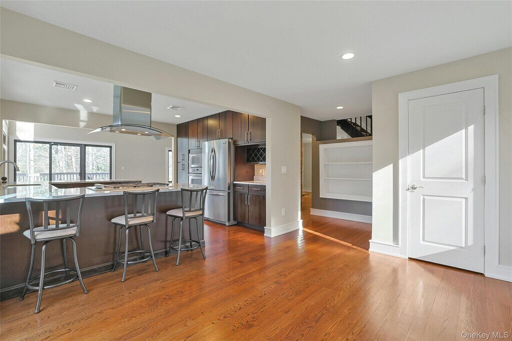 PEAK HAVEN"- Discover a striking contemporary retreat where open-concept living meets the serenity of untouched parkland just 35 minutes from NYC. This 2-3 bedroom,3-bath home rises with soaring vaulted ceilings,walls of glass,and a generous en-suite primary bedroom,creating an atmosphere that feels both expansive and deeply inviting. Every space is designed to flow effortlessly,offering comfort for quiet days at home and elegance for effortless entertaining. The impressive lower level extends the living experience with a fully finished,walk-out basement that opens to the patio,along with a spacious laundry room and abundant storage. Whether you're hosting guests or simply unwinding,the architecture encourages an easy connection to the surrounding landscape. Perfectly suited for those seeking a refined Catskills-inspired escape just 35 minutes from Manhattan and mere minutes from nearby river towns of Nyack and Piermont. The residence offers over 600 sq. ft. of multi-level decking,an elevated vantage point for morning coffee,summer evenings,or taking in the sounds of nature. It strikes that elusive balance of privacy without feeling remote,situated on one of Orangetown's most picturesque and sought-after roads. Set on 1.3 acres bordering untouched parkland,the residence has been fully rebuilt with exceptional craftsmanship. Inside,sunlight pours across rich hardwood floors,a stunning granite-clad kitchen with stainless steel appliances,and generously scaled rooms with captivating woodland views. Thoughtful details and quality materials define every corner. Here,you can hike from your own backyard,relax on the front porch overlooking the trees,or enjoy easy access to the charming cafes,restaurants,shops,and the Hudson River just minutes away. Seamlessly blending design,comfort,and natural beauty,this home offers a rare retreat that feels both deeply peaceful and effortlessly connected. More amenities include a 2-car attached garage and wood-burning fireplace. Based on information submitted to the MLS GRID as of [see last changed date above]. All data is obtained from various sources and may not have been verified by broker or MLS GRID. Supplied Open House Information is subject to change without notice. All information should be independently reviewed and verified for accuracy. Properties may or may not be listed by the office/agent presenting the information. Some IDX listings have been excluded from this website. Prices displayed on all Sold listings are the Last Known Listing Price and may not be the actual selling price.