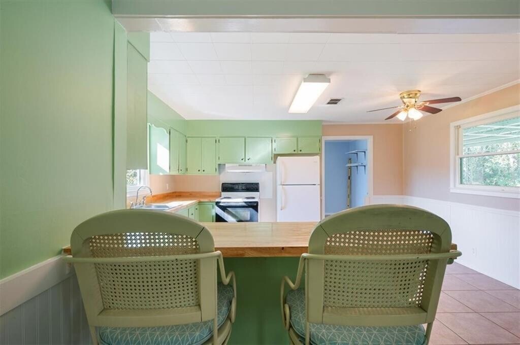 Dreamy cottage close to downtown Woodbine , the Satilla River and the City of Woodbine Riverwalk. Enjoy this freshly updated home that has original hardwood floors, a fresh coat of paint inside and out, freshly updated kitchen with painted cabinets and new butcher block countertops. This home offers 3 bedrooms and a bathroom that was just updated with new tile flooring, tile surround in the tub/shower and a new vanity. This home flows effortlessly from the living room into the large dining room and into the kitchen. You will also find the second full bathroom off of the kitchen and a laundry room. Don't miss out on this beautiful home in the heart of Woodbine!