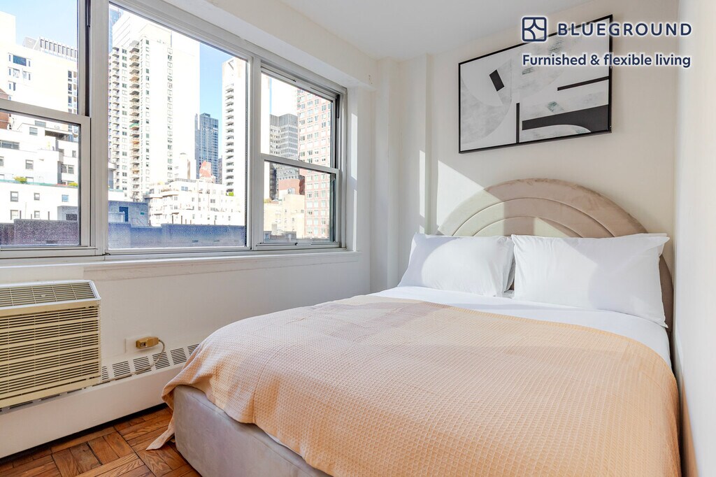 Discover the best of New York, with this two bedroom apartment in Midtown East. It’ll be easy to simply show up and start living in this fashionably furnished apartment with its fully equipped kitchen, bright living room, and our dedicated, on-the-ground support. (ID #NYC2164) The advertised rate of $4,940/month is the lowest available price, based on a 5 month(s) and 15 day(s) stay with a move-in date of December 17, 2027. If you’re looking for a 1-year stay, the rate is $5,120/month. Rates vary depending on the duration of stay, season, and other parameters. For exact pricing and additional pricing components, please visit our website and enter your desired move-in and move-out dates. The rate is applicable when billed upfront; it can be higher if billed in multiple payments. Brokers are welcome to reach out. Were you looking for an unfurnished lease? Try Blueground instead and upgrade from unfurnished to furnished living: - Furnished at rates comparable to unfurnished - No setup or furniture costs - save thousands - Move-in ready - save time, just bring your suitcase Designed with you in mind As with any Blueground apartment, you’ll find a thoughtfully designed space complete with beautiful furniture and a fully equipped kitchen in this two bedroom property. And, thanks to our superior quality mattresses, luxury linens, and towels, you can relax knowing you’ll always feel comfortably at home. When you’re ready for some fun, you can take in the New York vibes or bring the entertainment to you with the premium wireless speaker or smart TV. Sleeping arrangements Queen Bed, 63in/160cm Queen Bed, 63in/160cm Amenities Building amenities unique to this two bedroom apartment include an on-site: - Doorman - Dryer in building - Elevator - Washing machine in building Arrival and ongoing support The entire apartment is yours to enjoy! Throughout your stay, you’ll have access to our Client Experience team through the Blueground App. You can schedule additional cleanings, submit maintenance requests, and view our neighborhood recommendations with just a few taps. We’ll share all details upon confirmation of your stay. Ideally Located This furnished apartment is located in Midtown East. This bustling neighborhood is home to NYC landmarks like the Empire State Building, the United Nations' headquarters, and Grand Central Station. Midtown East is also home to a thriving dining scene, with everything from humble food carts selling hotdogs to white-tablecloth restaurants with multiple Michelin stars. There are also many cultural attractions, including the Museum of Modern Art, the lovely Japan Society, the historic Morgan Library, and more. Midtown East is also home to some incredible shopping, from the international flagship stores along Fifth Avenue to Bloomingdale's, one of the city's best-loved department stores. Other things to note This Blueground apartment has flexible lease options, allowing you to book it for one month, a year, or more. Brokes CYOF. We take great pride in ensuring every photo displayed is shot in our own units with our actual furnishings. That said, we regularly refresh our decor and furniture arrangement, which may differ from what’s pictured. [SI]
