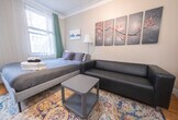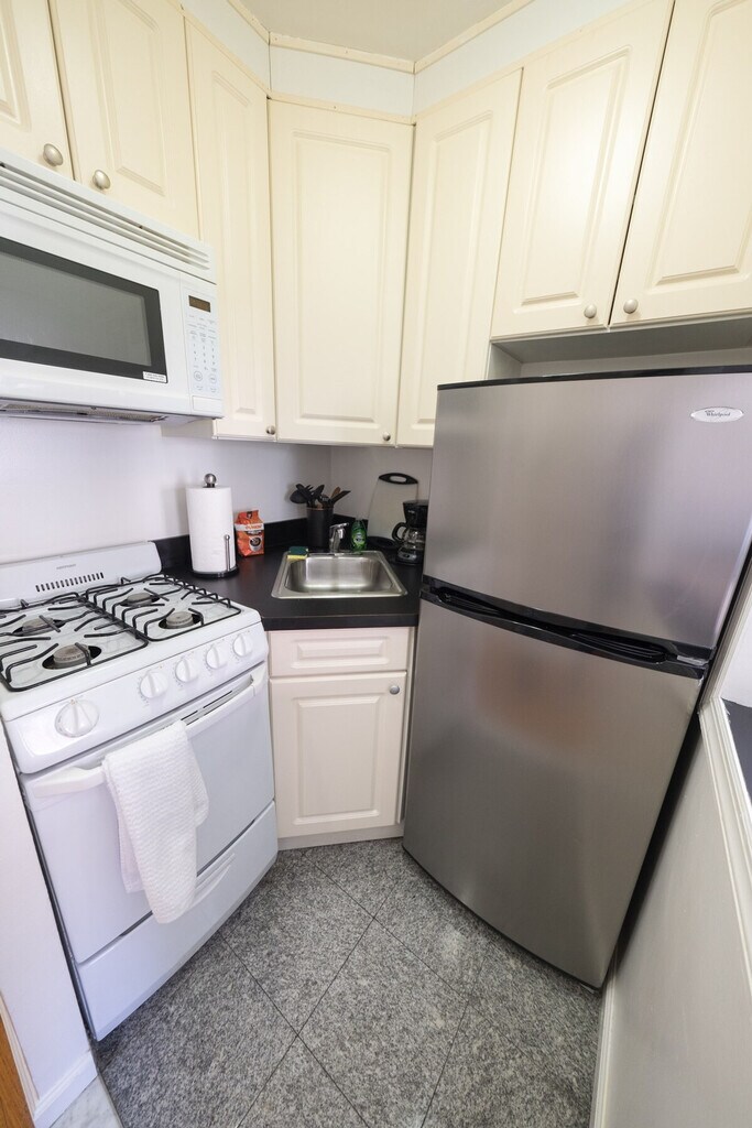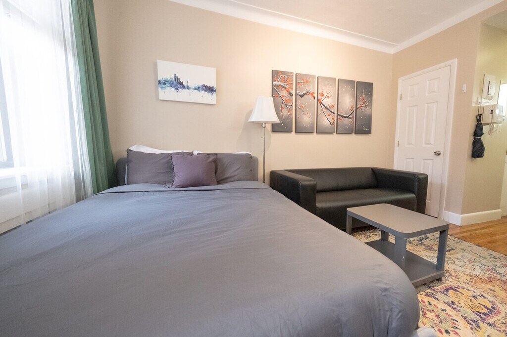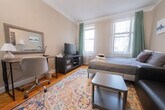 Experience the comfort and convenience of this stylish, fully equipped studio located on the second floor of a walk-up building. Ideal for extended stays, this cozy apartment offers everything you need for a relaxing and productive time in the city. Enjoy preparing your meals in the fully equipped kitchen with a large refrigerator, stovetop, oven, microwave, toaster, and all the utensils and cookware you need. The comfortable sleeping and living areas feature a plush queen-sized bed, a comfy couch, a work desk, and a mirror, making it easy to unwind or get to work in style. The modern bathroom offers a spacious marble setting with both a relaxing bathtub and a refreshing shower for ultimate comfort. Convenience items such as fresh linens, towels, an iron, and a hairdryer are provided, and you have access to a washer and dryer in the basement. Located in the Upper East Side, this area is synonymous with old money and high society. Alongside Central Park, between 5th and Lexington avenues, up to East 96th Street, the trappings of wealth are everywhere apparent with posh buildings, Madison Avenue's flagship boutiques, and doormen in braided livery. It's a key destination for visitors, with some of the most fantastic museums in the country, including the Metropolitan Museum of Art and the Solomon R. Guggenheim Museum. Subway lines Q at 72nd Street and 6 at 77th St are nearby, making it easy to explore the city. Smoking inside or outside of the apartment will result in a fine of $500. Pets are not allowed, and a fine of $500 will be charged if this rule is violated. Quiet hours are from 10 pm to 7 am. Check-out time is at 11:00 AM, and all dishes should be placed in the kitchen sink, and all trash in the trashcans. A laptop computer is not included. Includes a work desk and Wi-Fi, ensuring a remote work-friendly environment. Kindly note that a $350 refundable security deposit is required and will be collected directly by the partner after your booking is confirmed. The security deposit will be handled through direct communication with the partner and is not processed automatically. [SI]