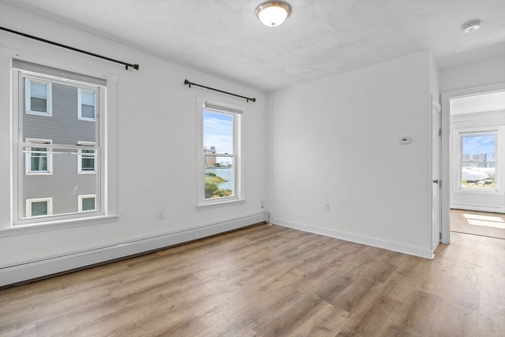 Top floor 2 bed 1 bath in East Boston’s coveted Jeffries Point! Sun-filled corner unit with a flexible layout & updated kitchen featuring stainless steel appliances,farmer’s sink,peninsula,& ample storage,flowing into the living area for easy entertaining. Renovated bath with tiled shower,vanity,& built-ins. Primary bedroom includes a walk-in office/closet plus two additional closets. Private deck with close access to the Harborwalk,Piers Park,Marina water taxi,Reel House,Downeast Cider,& Maverick Sq Station. Unit will be freshly painted this week. Common laundry (new 2025). Pets negotiable. Rental application,verification of income & credit report required to apply. Move in deposits include 1st month’s rent & security. No broker fee. Available NOW! MLS# 73434364