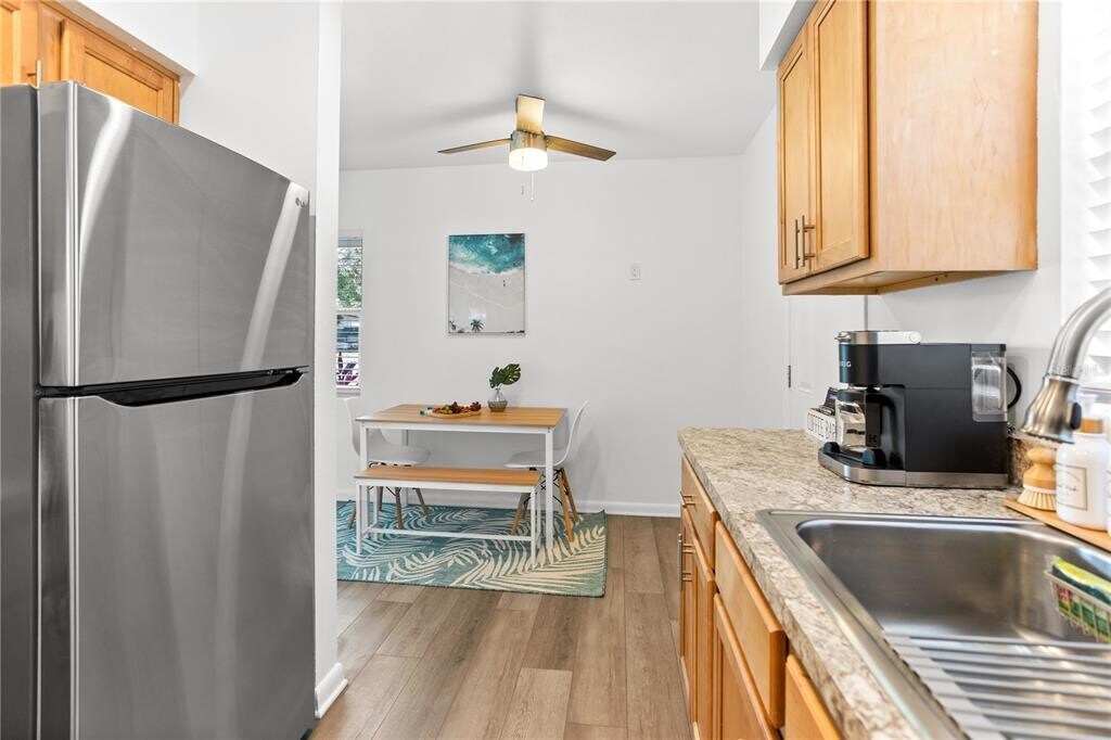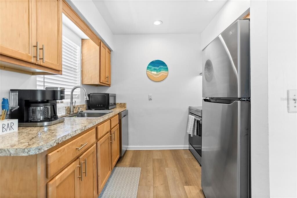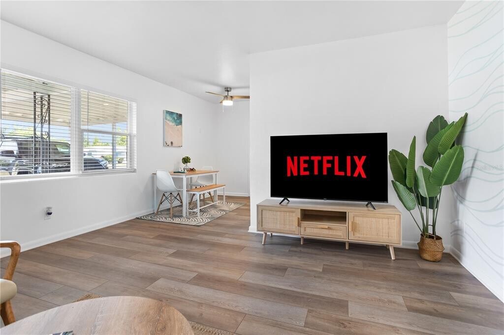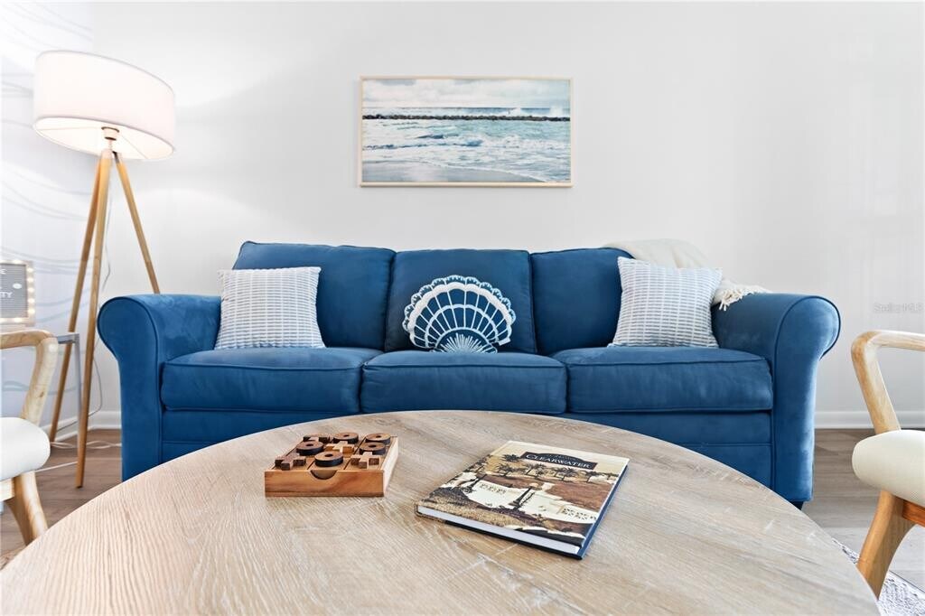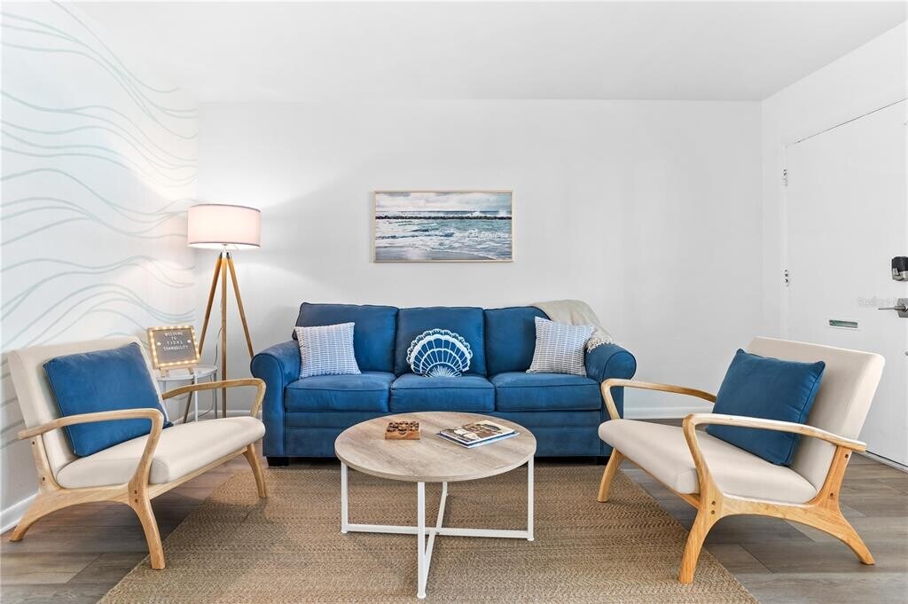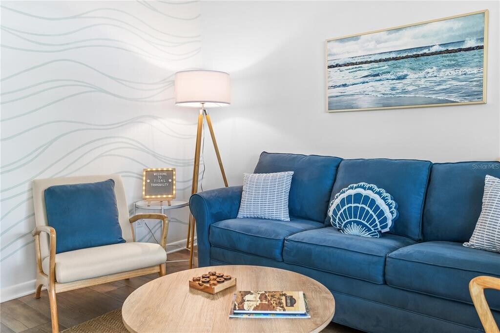 Welcome to Tidal Tranquility,a beautifully renovated duplex located just minutes from Clearwater Beach,Coachman Park,and vibrant Downtown Dunedin. This stylish 2-bedroom,1-bath home offers a spacious and inviting floor plan with modern coastal décor,vaulted ceilings,and abundant natural light. The living area features a comfortable layout with a smart TV and a pull-out sleeper sofa,while the fully updated kitchen comes complete with modern appliances,ample counter space,and a dedicated coffee/tea bar. The private king suite includes premium finishes,blackout curtains,and a mounted TV,while the guest bedroom offers two full-size beds with memory foam mattresses. The bathroom is fully updated with a dual shower system and premium fixtures. Added conveniences include an in-unit laundry room with washer/dryer,covered parking for multiple vehicles,and keyless smart lock entry. Located in a quiet neighborhood yet close to shopping,dining,and Florida’s top Gulf beaches,this duplex is ideal as a full-time residence,vacation home,or investment property. MLS# TB8431413