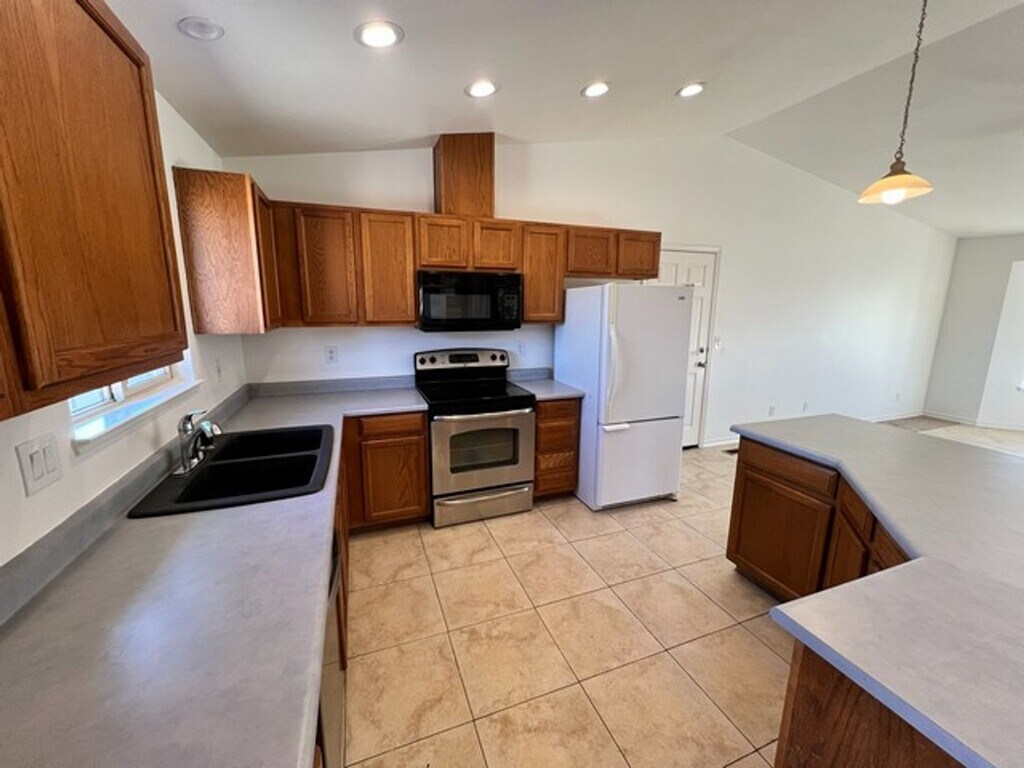 This three bedroom has fresh exterior paint. Tile floor in the great room and kitchen. Kitchen with island seating and including fridge, dishwasher, microwave and flat top electric stove. Great room with vaulted ceilings, ceiling fan and slider access to spacious backyard. Primary bedroom with attached bath. Laundry closet with hook-ups. Minutes from Spanish Springs High, Shaw Middle School, Eagle Canyon Park and Pyramid Way. Close to shopping, library, restaurants and entertainment. Tenants responsible for NV Energy only. 2 pets max under 30lbs on approval with additional deposit and $50 per pet per month pet rent. No co-signers considered. All properties require an application process. Each person over the age of 18 must complete an application. The application fee is $35 per person. Applications include running credit (650 or better), employment/income verification, and rental references. NV. BS.0143495, NV. PM.0164783
