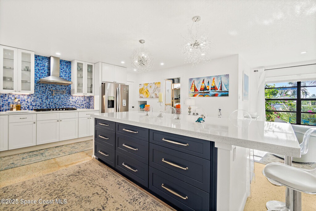 Michelle MckinneyFabulous single story home in the heart of Satellite Beach. This home is the home you have been waiting for! There is a 5 y/o roof. The updated and open kitchen welcomes you with its oversized island and state of the art appliances, gas cooktop complete with pot filler, gorgeous cabinets and quartz countertops. There is also a wine bar area for added entertainment. This redesigned split floor plan has lots of surprises! Just wait until you see the redesigned master suite! There is a screened patio for that evening enjoyment overlooking a tiled fountain. The landscaping is lush and full of tons of natural Florida vegetation.Room to park a boat or RV! Professional Photos coming soon! House is also listed for Sale MLS 1055769.
