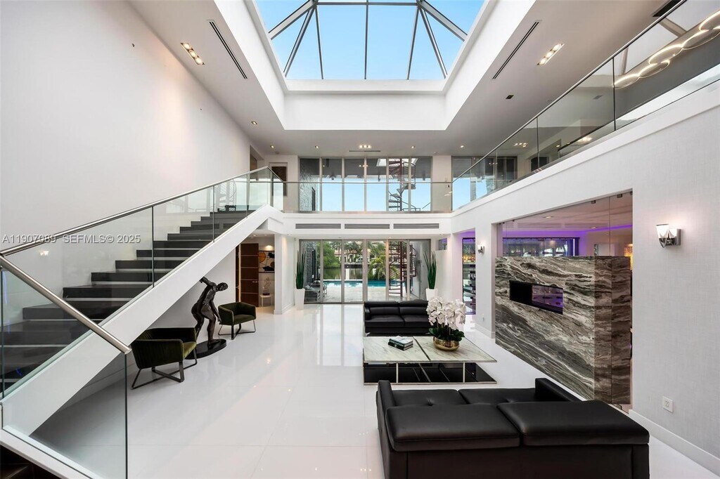 This spectacular modern waterfront residence is located in the highly desirable Las Olas Isles. This stunning property features include a red spiral staircase to the rooftop with views of the beach, ocean and city. Water frontage of 121 FT, dock, heated pool, jacuzzi, California kitchen area, pool table, fireplaces throughout; this home is an entertainer's dream. The kitchen features an island and upgraded appliances. This home has 2 Master bedroom suites, one downstairs and one upstairs. Rental price fluctuates based on season and availability. Shorter stays of one month or less welcome. This home comes completely furnished. MLS # A11907089