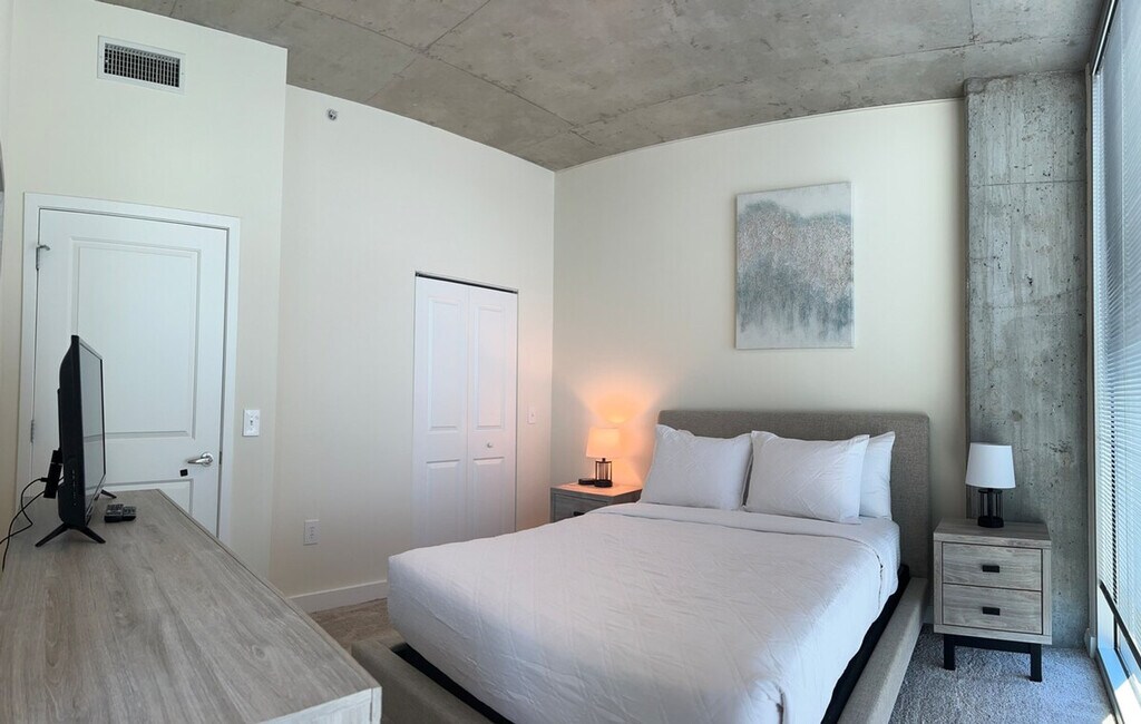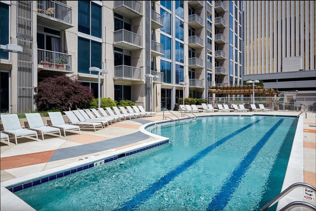 Feel at home in this spectacular and roomy 1-bedroom apartment in the heart of uptown Charlotte, featuring a view of the city from the 19th-floor balcony. This upscale apartment community features a swimming pool and a fabulous, well-equipped fitness center, along with a great clubhouse and business center. Secure covered parking is included. Pets are permitted for $8.00 per day per pet, not to exceed $500.00. This apartment is centrally located directly across the street from Romare Bearden Park and the Truist baseball stadium, where the Charlotte Knights play. Although these accommodations are pet friendly, there is a required pet fee. [SI]