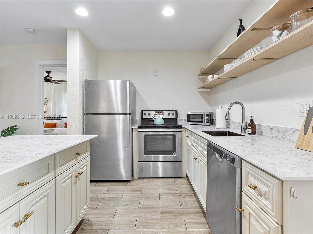 Step into this completely remodeled and fully furnished 1 bed, 1 bath apartment featuring sleek tile floors, stainless steel appliances, upgraded cabinetry, and recessed lighting. The spacious bedroom offers a generous closet, while the bright and airy layout creates a cozy yet modern feel. Enjoy the convenience of an in-unit washer and dryer located on the private patio. Centrally located just 10 minutes from Las Olas and the airport, this turnkey rental is available for short- or long-term leases. Comes with 2 parking spaces and rapid approval process. Available March 1 MLS # A11802612