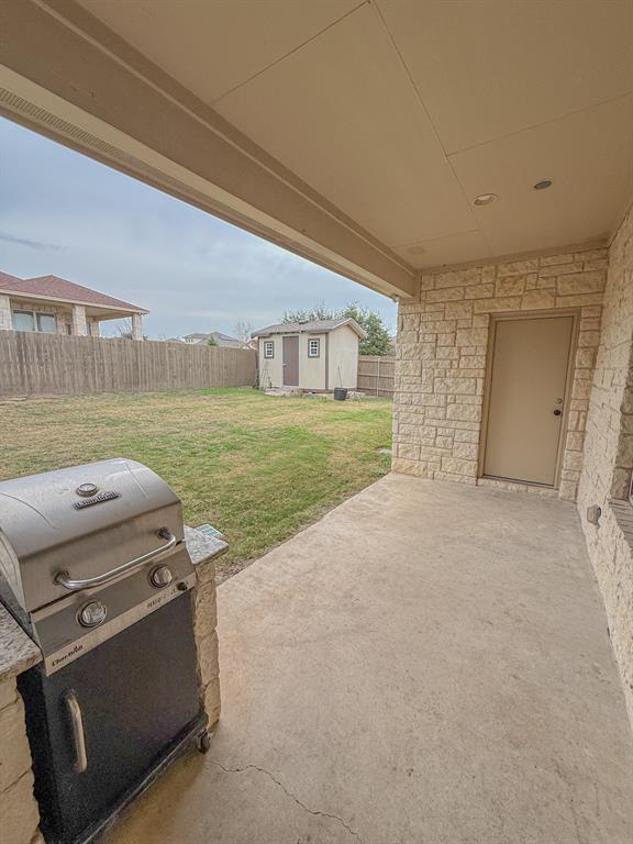 Great single-family home for lease in the coveted Home Place at Jarrell neighborhood. This corner-lot with side entry garage offers convenience and privacy. Located on the major thorough-faire of the neighborhood accessibility comes with ease. This home features a large front yard and a private backyard with trees, storage shed, and a built in outdoor kitchen (grill and refrigerator). The 3 bedroom, 2 bathroom home features a split layout, making it an ideal layout for entertaining, families, guest, etc. A spacious primary suite is situated at the front of the home along with a large primary closet and private ensuite. A private tornado shelter is accessible from the primary closet. The living, kitchen, and dining are all openly incorporated and offer lots of natural lighting. The beautiful white kitchen cabinetry is a statement and will be the center of attention. Beside the kitchen is another full bath along with the two secondary bedrooms. The laundry room is located adjacent from the primary suite and offers access to the side-entry garage. The dining room features a walk-out door to the covered back patio which features the outdoor grill and refrigerator, and another access door to the garage for additional convenience. The backyard is East facing so it's shaded in the evening and offers ample space to enjoy those cooler evenings. Come see this one for yourself! MLS ID 9265631