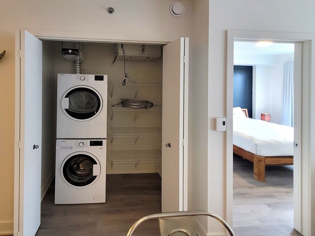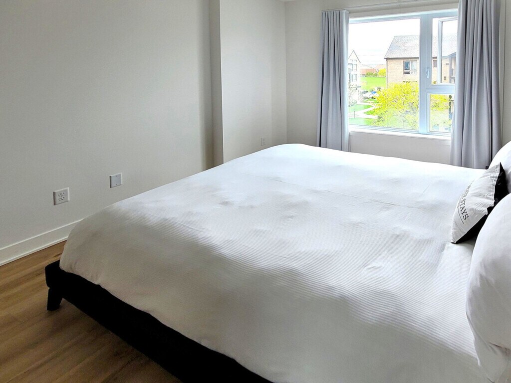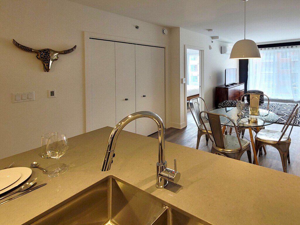 The advertised rate of C$4,200/month is the lowest available price, based on a 30 day(s) stay with a move-in date of March 12, 2026. Rates vary depending on the duration of stay, season, and other parameters. For exact pricing and additional pricing components, please visit our website and enter your desired move-in and move-out dates. The rate is applicable when billed upfront; it can be higher if billed in multiple payments. Feel at home in this furnished 2-bedroom apartment in a quiet and well-connected area of Brossard, starting at approximately 1051 square feet. This apartment features a fully equipped kitchen with essential appliances, cookware, and utensils. The primary bedroom features a queen-size bed and an en-suite bathroom. A modern full bathroom includes a sleek bathtub-shower combo. The apartment also offers an open-concept living and dining area, an in-suite washer and dryer, self-regulated air conditioning and heating, deluxe bedding, linens, towels, unlimited high-speed wireless internet, and a Smart TV. Parking is available for an additional fee, and pet-friendly options are available with restrictions and additional fees. The Blum offers easy access to Quartier DIX30, major highways, nearby parks, and everyday services, combining suburban tranquility with seamless connectivity to Montreal. A notice to vacate must be sent in writing 30 nights before the departure date. Failure to do so will result in a charge of 30 nights (only valid for stays over 30 nights). Reservations can be extended with 30 nights notice and are always subject to availability and rate variances. A separate workspace is available in most suites. Building amenities include an outdoor swimming pool, a fully equipped fitness center, a resident lounge with kitchen access, landscaped outdoor terraces, an urban chalet, and conference rooms. Guest services offer 24/7 support. [SI]
