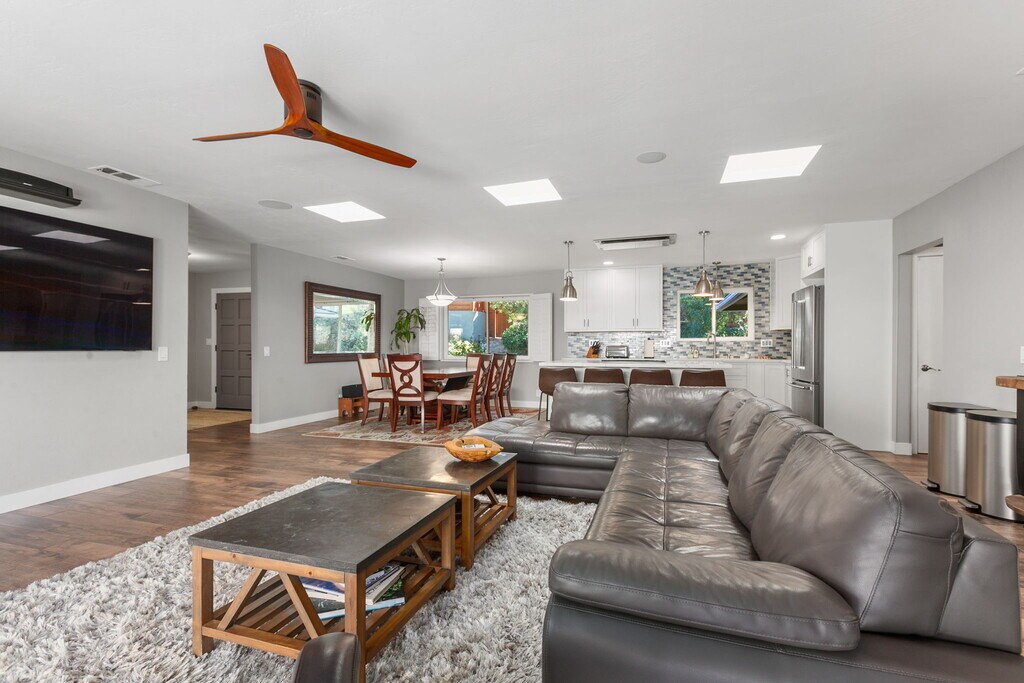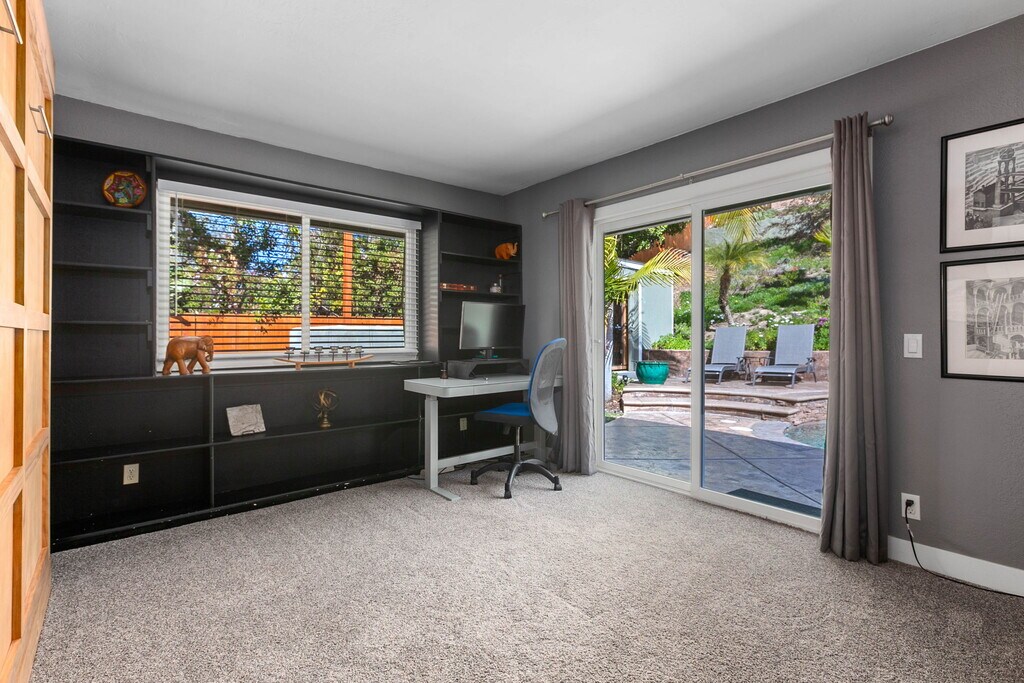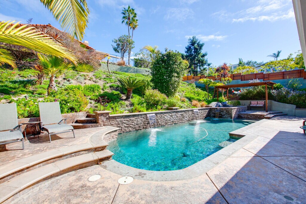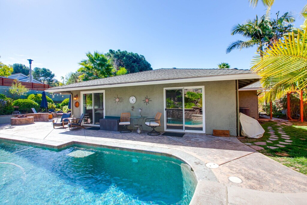 Discover your dream retreat in this stunning, fully furnished 2,500 sq ft single-story home, offering 4 bedrooms and 2.5 baths with a perfect blend of mid-century modern style and relaxed California living. Designed for comfort and entertaining, the home features granite countertops, stainless-steel appliances, and expansive indoor-outdoor living. Step into a private backyard oasis complete with a sparkling pool, waterfall, hot tub, sauna, fire pit, and BBQ area ideal for unwinding or hosting. Inside, enjoy a spacious game room with a pool table. The home also includes a flexible office space that can easily function as a fourth bedroom, depending on your needs.. The fully fenced backyard includes multiple seating areas surrounded by lush landscaping, plus a half-court basketball area that doubles as a workout space. Centrally located near La Costa Resort, scenic hiking trails, Legoland, and some of North County's best beaches, with easy access to shopping, dining, and golf. Key Features & Amenities: Fully furnished, turnkey home 4 bedrooms | 2.5 bathrooms | Single-story Private pool, hot tub, sauna & waterfall Fire pit & BBQ area Game room with pool table Dedicated home office / workspace Fully equipped kitchen with stainless-steel appliances Fully fenced backyard with multiple seating areas Half-court basketball / fitness area High-speed Wi-Fi & Smart TVs This fully furnished mid-term rental is move-in ready and available for stays of 30 days or longer. Utilities included (per lease terms). Pets may be considered, and lease terms are flexible. Don't miss the opportunity to enjoy this exceptional, move-in-ready home.