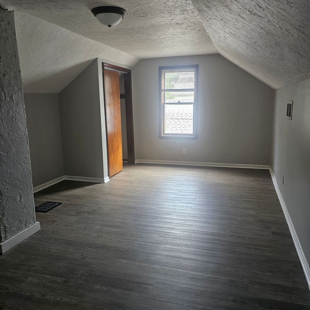 This is a two bedroom, one bathroom apartment. Larger loft/bedroom is upstairs. This unit has new paint. Tenant is responsible for all utilities here.