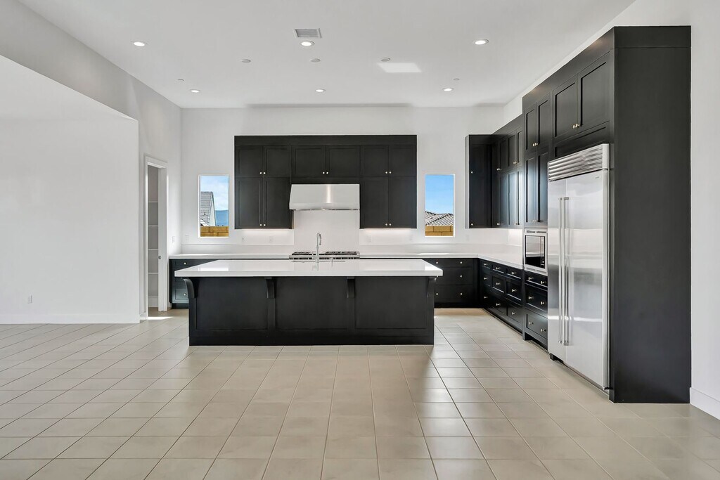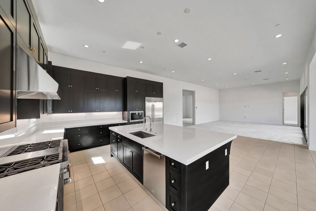 Welcome to this stunning single-story residence at 30000 Camino Los Robles in Valencia’s prestigious hillside community. This elegant 4-bedroom, 4.5-bathroom home delivers approximately 3,377 square feet of spacious, open-concept living with premium finishes throughout. Soaring ceilings and abundant natural light greet you as you enter. The chef-inspired kitchen features sleek dark cabinetry, crisp white quartz countertops, a large center island perfect for entertaining, high-end stainless steel appliances including a Wolf range, and a walk-in pantry. The primary suite offers a private retreat with a luxurious en-suite bath, while the additional three bedrooms provide generous space and ample closet storage. Multiple bathrooms ensure convenience for family and guests. The home is equipped with energy-efficient solar panels and is smart home-ready. Expansive windows and multi-panel sliding glass doors open to breathtaking panoramic views of rolling hills, mountains, and the surrounding valley. With durable tile flooring, modern recessed lighting, and designer touches throughout, this residence is move-in ready. The backyard presents a large outdoor oasis with endless vistas. **Photos feature AI generated backyard. This is a concept of what the backyard may resemble.**