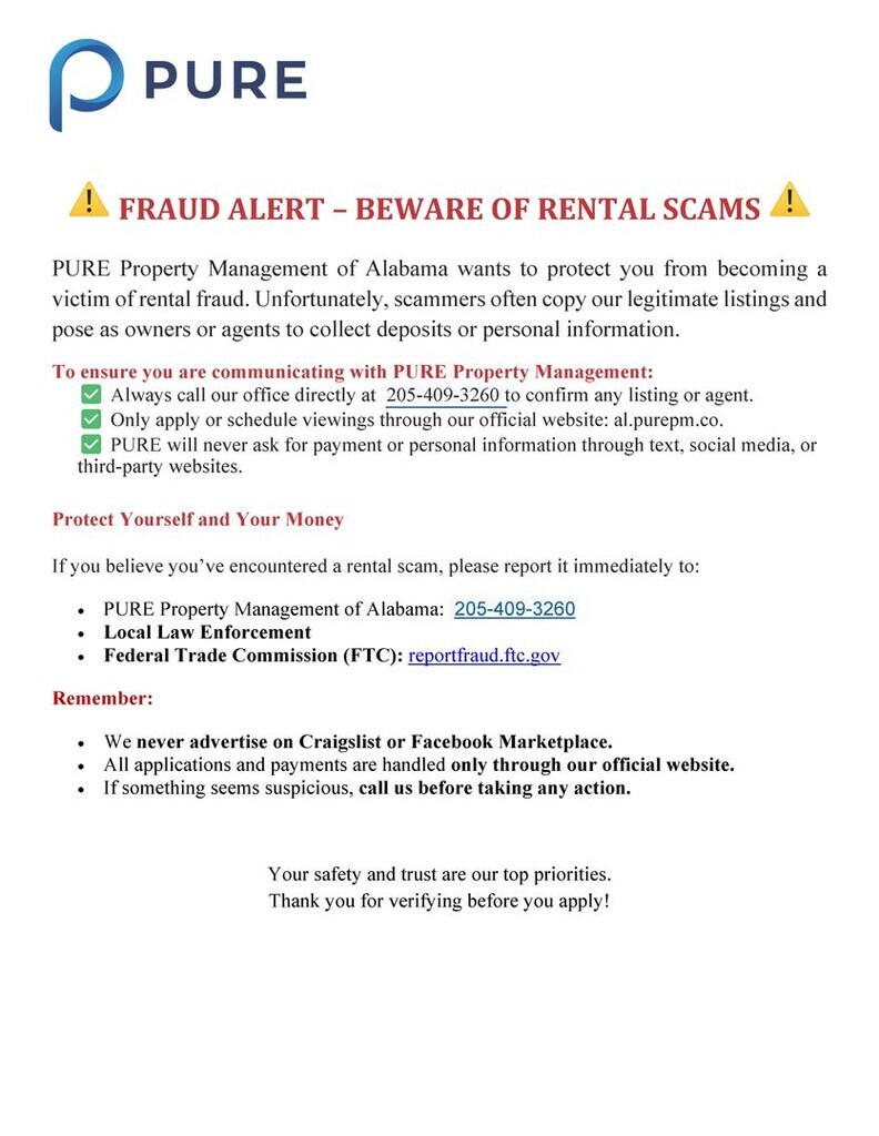 !! COMING SOON !! Welcome to your new home! This beautifully maintained 1,584 sq. ft. residence offers the perfect blend of comfort and convenience. With a thoughtful layout featuring three spacious bedrooms and two full bathrooms, there is plenty of room for everyone to spread out and relax. Interior Highlights Formal Dining Room: Perfect for hosting dinner parties, holiday meals, or utilizing as a sophisticated home office space. Fully Equipped Kitchen: Move-in ready with a dishwasher included for easy cleanup. Laundry Made Simple: No need to bring your own—this home comes complete with a washer and dryer. Ample Natural Light: Large windows throughout the home create a bright and airy atmosphere. Outdoor Living & Maintenance Enjoy the luxury of a beautiful yard without the chore of maintaining it! Landscaping Services Included: Professional lawn care and landscaping are covered in your rent, giving you your weekends back to enjoy everything Tuscaloosa has to offer. Make sure you are communicating directly with PURE - If you are texting someone via Facebook or Craigslist that is NOT a PURE associate. We do not advertise on Facebook or Craigslist. SECURITY DEPOSIT INFORMATION Pay the traditional security deposit amount, or reduce your move-in costs with our Security Deposit Waiver Program. Eligible applicants can replace the traditional deposit with an affordable monthly fee. While you remain responsible for any damages, this program offers substantial upfront savings! RESIDENT BENEFIT PROGRAM Elevate your living experience! Every PURE home includes our Resident Benefits Package, ranging from $25.99 - $49.99, and may include perks such as on-demand pest control, liability insurance, credit building, and much more! AMENITIES AND SERVICES INCLUDED Moving in just got easier! Enjoy PURE Utility Concierge services at no extra cost, making your transition smooth and simple. The lessee(s) understand(s) that the move-in fee is a one-time fee of $ 250.00. Application Fee: $75.00 per applicant. *All approved applicants must stop by the office to provide photo identification prior to key release."