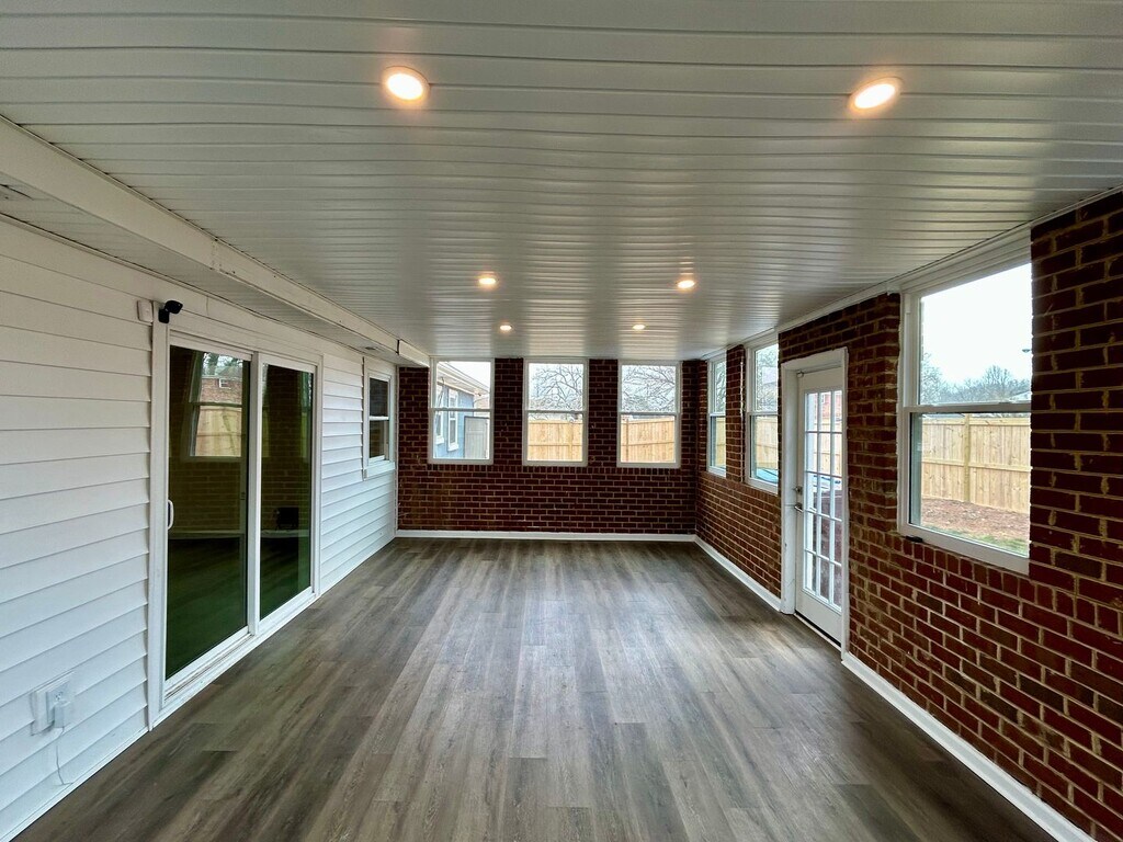 Renovated corner lot ranch offering 4 bedrooms and 2 full baths in a prime location near Camelot Elementary. Designed for modern living, the open concept layout flows effortlessly into a stylish kitchen with quartz counters and stainless appliances, while both bathrooms feature ceramic tile finishes. The sunroom adds standout charm with exposed brick and flexible extra space for living or storage. Step outside to a spacious, fully fenced backyard with wood privacy fencing and a powered brick detached garage for hobbies, a workshop, or additional storage.
