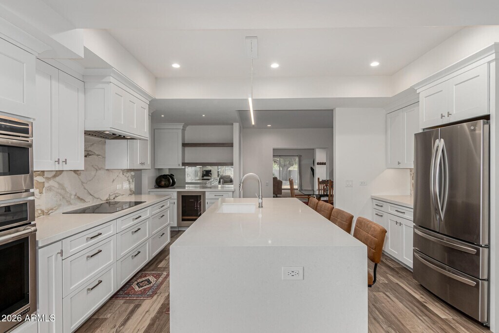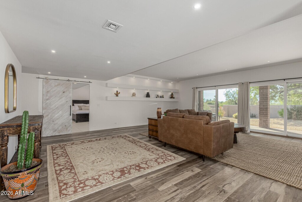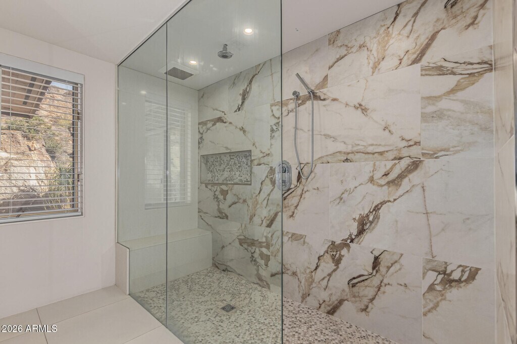 This tastefully remodeled patio home offers very spacious rooms,privacy and rugged natural scenery - and it is set back on a beautiful corner lot. The kitchen,dining area and living room are unique spaces that flow effortlessly into one another. The master bedroom is enormous. The eat-in kitchen leads outside to a private patio,and a paved stairway leads up to an elevated view area surrounded by rock outcroppings. A large south-facing covered patio is accessed from the living room and offers privacy. Quartz countertops,new kitchen appliances,a Dimplex electric fireplace,and a whole-house tankless gas water heater are just some of the upgrades. The community pool and spa are not far away,and an optional club membership can be purchased to enjoy all that The Boulders has to offer.