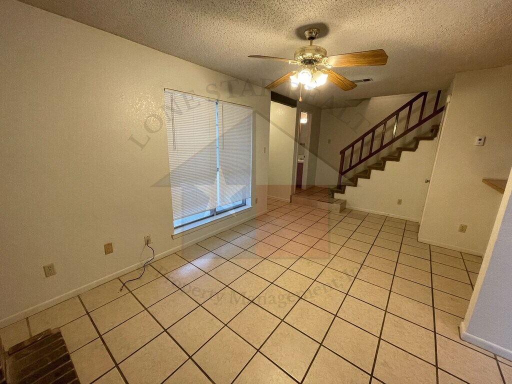This townhouse apartment is offering 2 bedrooms, 1.5 bathrooms, and 956 square feet. The living room has a fireplace with a ceiling fan and the kitchen is complete with a dining area, patio door leading to enclosed privacy patio, stove, refrigerator, dishwasher, breakfast bar, and full size laundry room. Both bedrooms and the full bathroom are upstairs and the 1/2 bathroom is located in front of the stairway. The primary bedroom has a wooden deck balcony (perfect for relaxing after a long day at work). Updated photos coming soon!