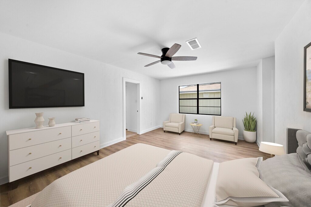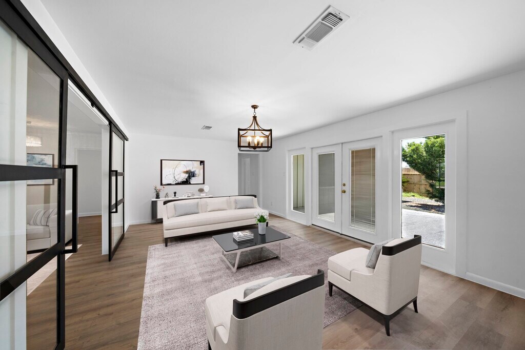 Welcome to this stunning one-story home in the Galveston. This home has been thoughtfully upgraded with NEW AC,interior paint,cabinets,countertops,flooring,showers,outlets,and modern lighting. This home offers a modern interior and fixtures,creating an elegant atmosphere. The open floor layout provides a seamless flow,while the living room's expansive windows fill the space with natural light. The wood flooring graces every room,enhancing the contemporary feel. Modern chandeliers and ceiling fans add a touch of sophistication to the ambiance. The kitchen features white cabinets and stainless steel appliances. The master bedroom offers an ensuite bathroom for ultimate privacy and relaxation. Step outside to the backyard and discover an uncovered patio,perfect for enjoying the outdoors. The garage is easily accessible,and a new fence ensures privacy. MLS# 81413269