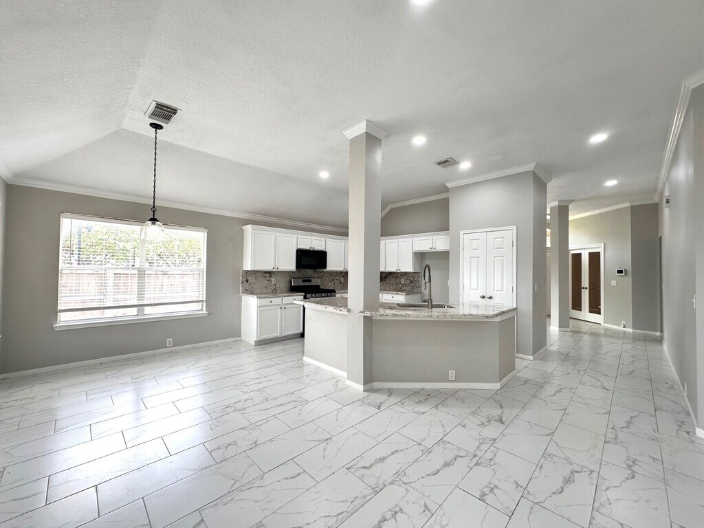 This completely renovated like new beautiful 3 bed,2 bath,office/study and formal dining room nestled in the serene neighborhood in Katy and zoned to the desirable Katy ISD! The home seamlessly combines the elegance of casual living and modern family life. Tile and laminate floors throughout the entire home,along with bay window,vaulted ceilings,ceiling fans,crown molding that enhance the elegance of this home. Spacious master suite,en-suite bath with jacuzzi,a kitchen with ample cabinet space and granite counter space and cozy elegant fireplace. Located minutes from I-10 and 99,surrounded by shopping centers and entertainment. Refrigerator,washer or dryer Not included. MLS# 16847235