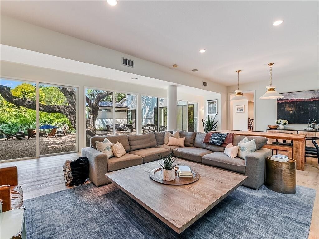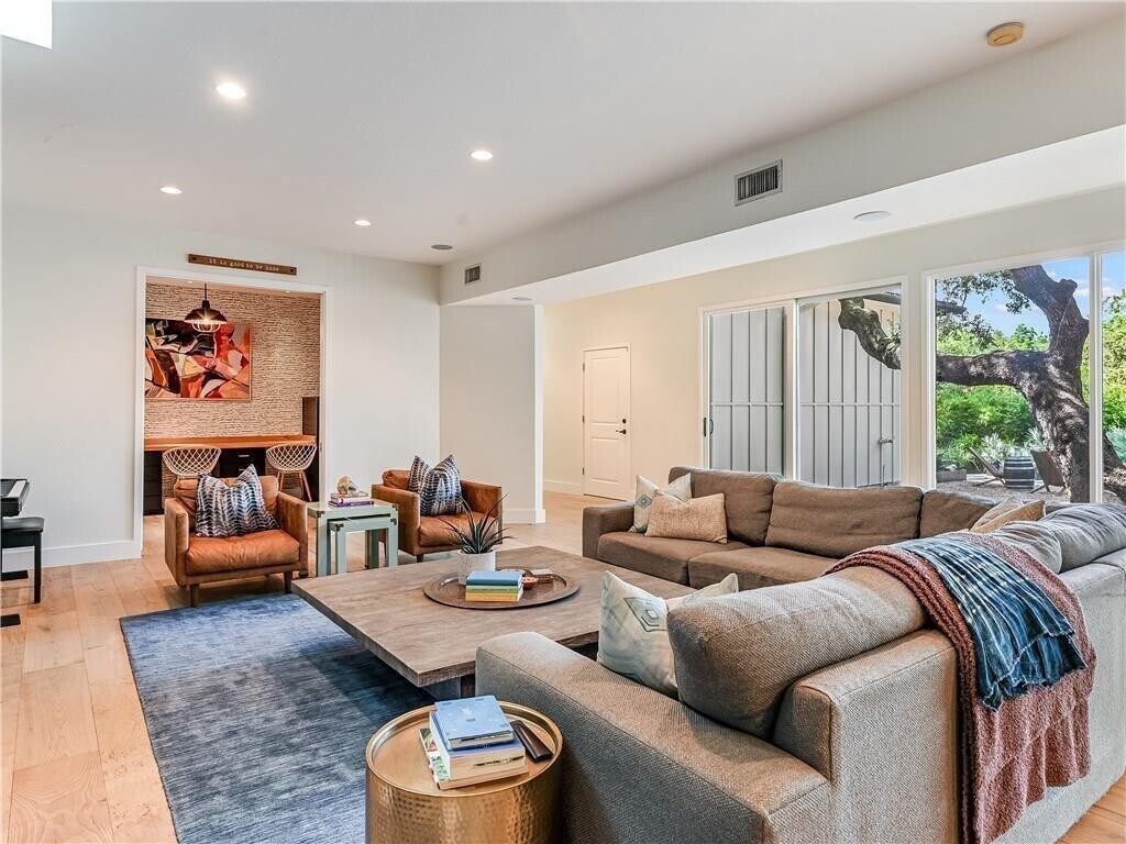 6-12+ month rental. Furnished home ready for new tenant. Larry Speck designed a contemporary home with ample oversized windows in the living areas and master suite, overlooking a massive courtyard with heritage oaks and a recently added outdoor living area. Enjoy the outdoors with the new pool and relaxing beach area, surrounded by turf and lush landscaping. This beautiful home has 5 bedrooms & 3.5 baths. The master suite is on the main level with a large walk-in closet. There is an additional main level bedroom with a private bathroom. The upstairs has 3 bedrooms, a large playroom & 1.5 bathrooms. The kitchen holds a huge island, chef MLS ID 8967136