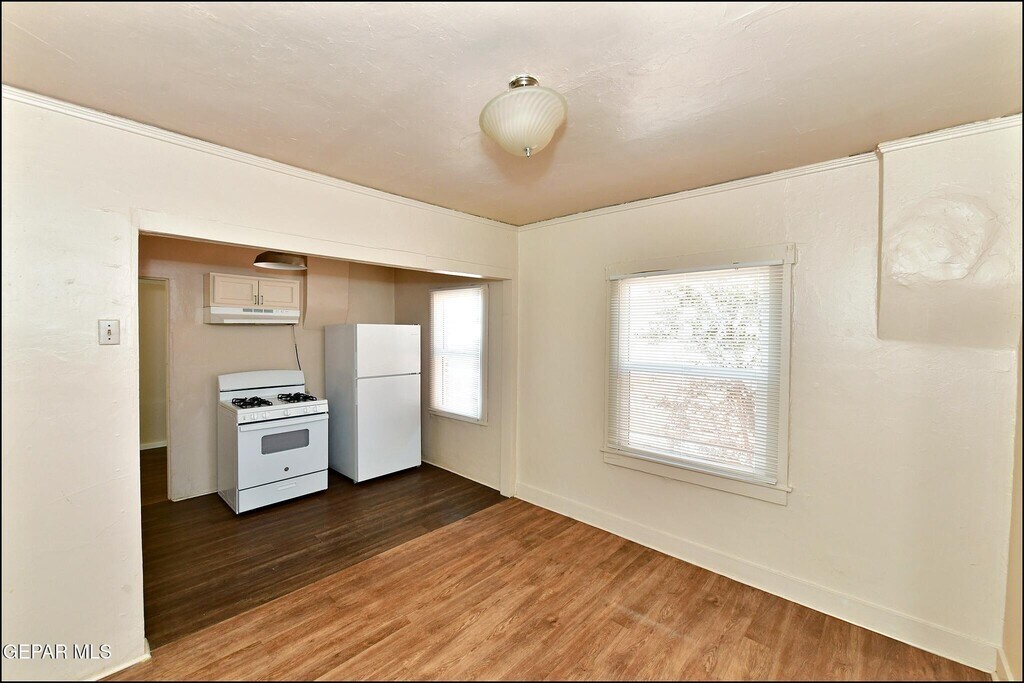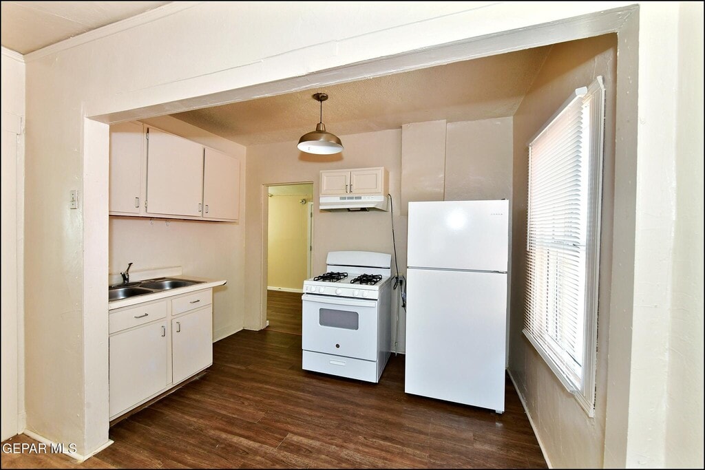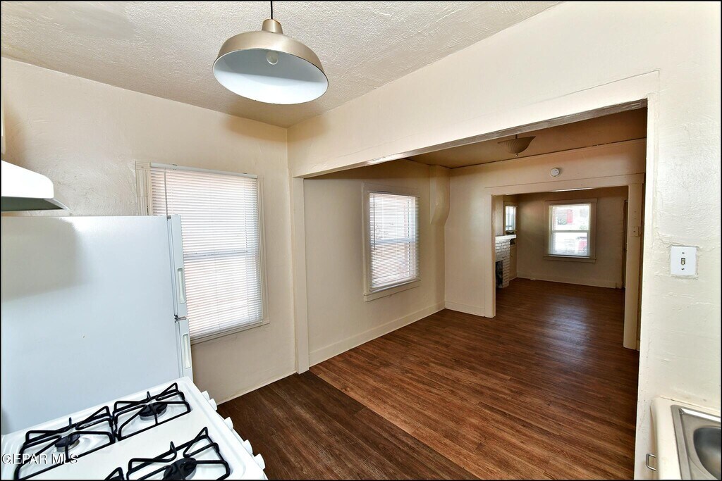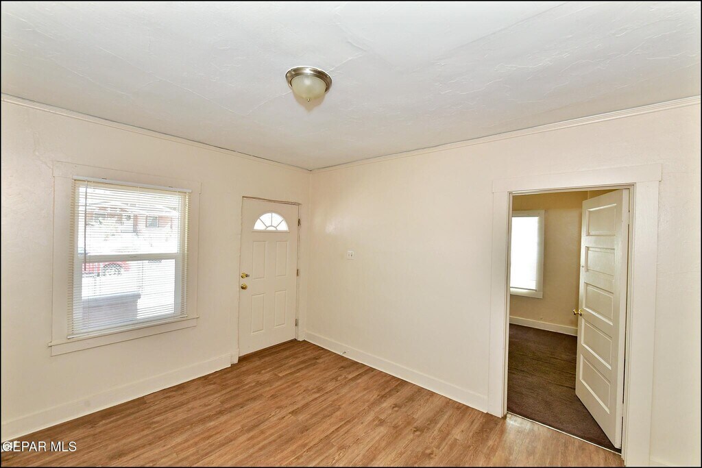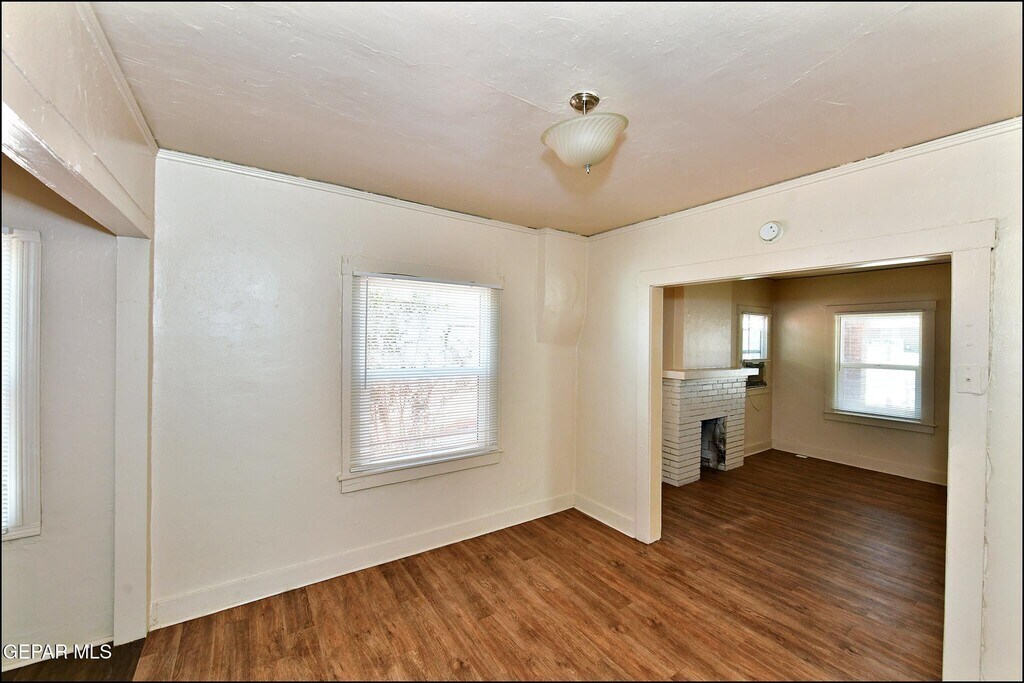 Step into the life you've envisioned,where every detail is curated for comfort and style. Nestled in one of El Paso's established neighborhoods on a quiet half cul-de-sac,this red-brick 2-bedroom,1-bath bungalow exudes character and warmth. The welcoming front porch introduces a living space where sunlight plays off the rich vinyl plank flooring and a painted brick fireplace adds timeless charm. A galley kitchen with crisp white cabinetry and essential appliances opens to a cozy dining area,perfect for everyday meals or quiet mornings. Each bedroom is thoughtfully appointed with ceiling fans and soft carpeting,while the tiled bathroom offers classic finishes and a deep soaking tub. The backyard is designed for enjoyment with artificial turf,a sandbox,and well-landscaped surroundings featuring mature fruit trees. Located near a community fitness center and a water park,it's a serene yet activity-rich setting. Deposit-Free Renting service to Obligo qualified renters,fees may apply.