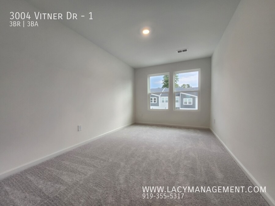 Modern 3-Bed, 2.5-Bath Townhome in Durham, NC! Take a virtual tour! Watch the full property video here: Welcome to this brand-new 1,592 sq. ft. townhome, built in 2025 and designed for modern living. Located in a well-maintained community, this home offers comfort, convenience, and a functional layout perfect for today's lifestyle. Step into a bright and open living space with large windows that fill the home with natural light. The open floor plan flows seamlessly from the living room to the dining area and kitchen, creating the ideal space for both everyday life and entertaining. The kitchen features sleek finishes, ample cabinetry, and plenty of counter space—perfect for preparing meals and hosting family or friends. Upstairs, you'll find three comfortable bedrooms, including a spacious primary suite with a private bath and walk-in closet. Two and a half bathrooms ensure convenience for everyone in the home. Located just minutes from downtown Durham, shopping, dining, and major highways, this home offers easy access to everything the Triangle has to offer while still providing a peaceful community setting. Schedule an online showing at: . Submit your application online at: Resident Benefits: **Get over $100 in monthly benefits for just $49.95 with our Resident Benefits Package! Enjoy valuable services with the flexibility to customize or opt-out *** Application Criteria: a) Gross household income of at least 3 times the rent b) A credit score of 650+ is preferred; we are happy to discuss your situation if your credit score is lower c) No evictions in the last 5 years d) A one-time pet fee of $300 per pet applies. An additional deposit may be required for multiple pets. No monthly pet fee; pet screening is required after application approval: $30 per pet. e) One-time admin fee of $250 required to pay after signing the lease.