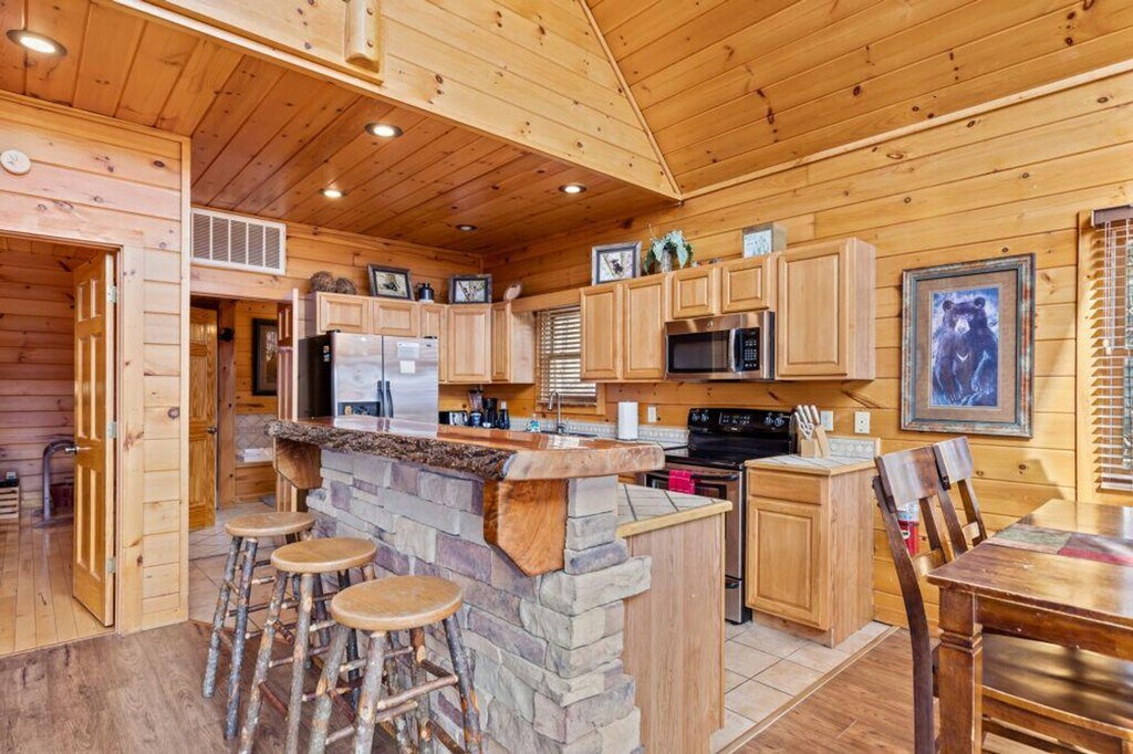 Welcome to Awesome Endeavor, a charming retreat nestled in the natural beauty of Sevierville, making it an ideal getaway where you can feel at home. This home offers spacious accommodations featuring a mix of king, queen, and bunk beds. The highlight is its inviting game room. The well-appointed kitchen boasts modern appliances and a generous dining area, and the living room, complete with a cozy fireplace, offers a warm and welcoming space to relax. Outside, the deck and patio provide ample space for entertainment, complete with a grill for BBQ nights. Free parking is available at the property for a maximum of 4 cars. Experience the best of Sevierville at Awesome Endeavor, where nature's beauty meets comfort and convenience. Great Smoky Mountains National Park is a short drive away, Dollywood is located in nearby Pigeon Forge, and The Island in Pigeon Forge is a lively entertainment complex. Smoky Mountain Deer Farm & Exotic Petting Zoo, Forbidden Caverns, Foxfire Mountain Adventure Park, and Tanger Outlets Sevierville are also nearby. At least one guest must be 25 years or older. Guests acknowledge and understand that they are financially responsible for any and all property damage that may occur during the stated rental period which can reasonably be attributed to the rental party's negligence or abuse. Guests cannot operate the exterior awning above the deck. For your safety, do not attempt to pull, push, climb, or tamper with the awning in any way. Misuse may cause damage or potential injury. Smoking is prohibited, and any violation of the smoking policy will incur a $400 fine plus the cleaning costs necessary to remove smoke odors. Pets and parties are not allowed. [SI]
