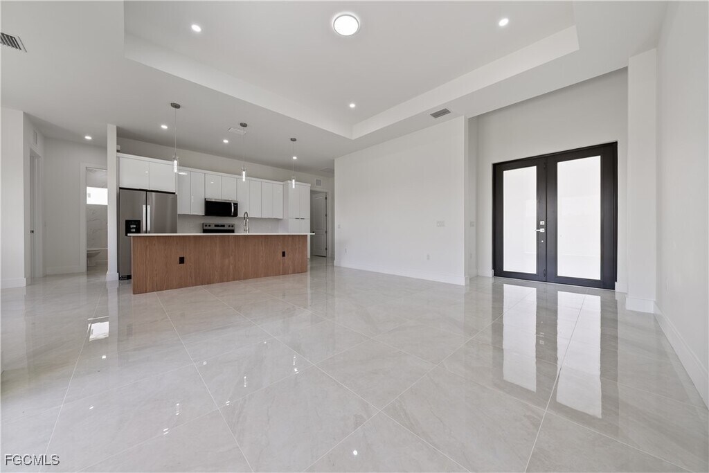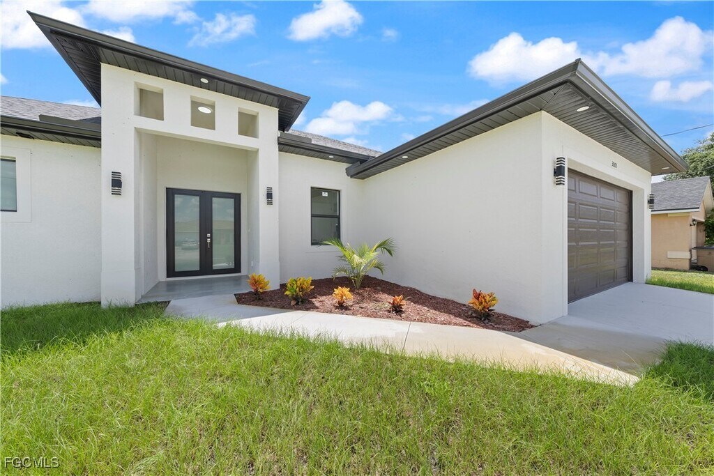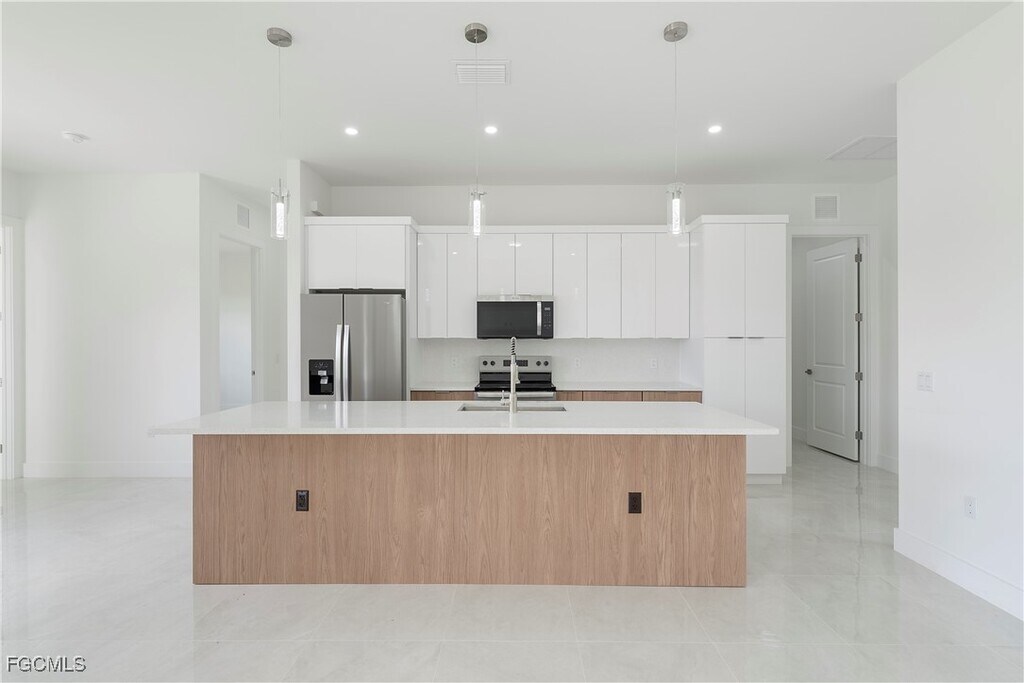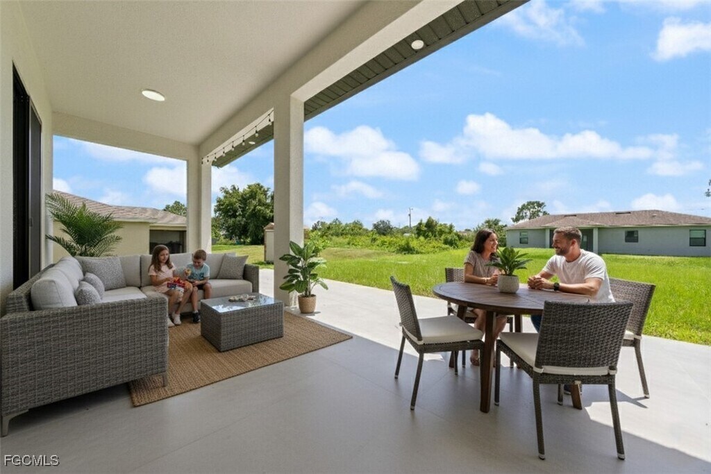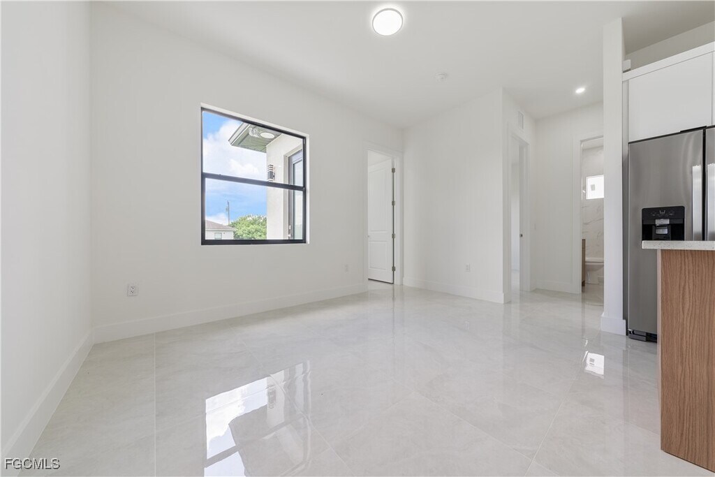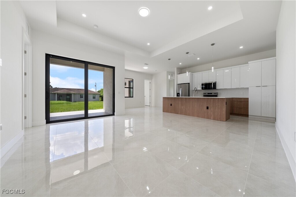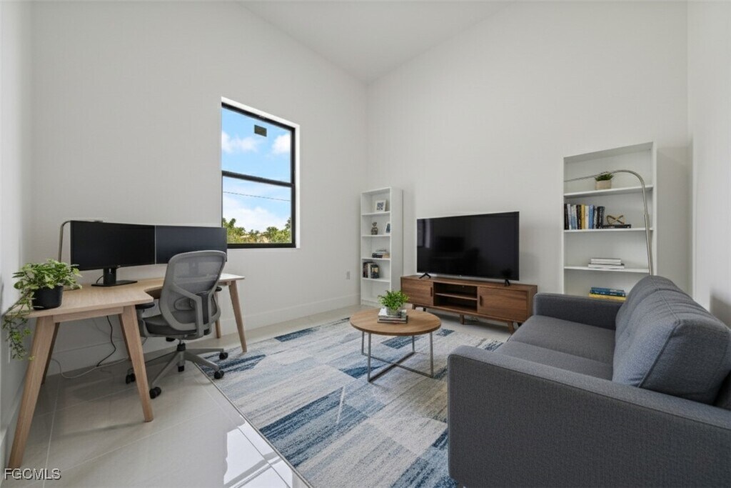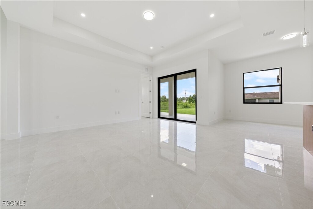 For Rent – Be the first to live in this brand-new 3-bedroom + Den,2.5-bath home,completed in April 2025. Located on a spacious 0.25-acre lot in Lehigh Acres,it offers modern design,open living,and a large backyard with a full sprinkler system. The open floor plan features 10' ceilings throughout and 11' coffered ceilings in the living and primary suites. The Den can serve as a home office or 4th bedroom. The kitchen is equipped with quartz countertops,stainless steel appliances,and a large island designed for cooking and entertaining. The primary suite includes a walk-in shower,double vanity,and private water closet. All bedrooms and baths have tile flooring. A covered lanai and exterior half bath make outdoor living easy. Additional features include hurricane-rated windows and doors,a 2-car garage,pre-wiring for security,and modern finishes throughout. Conveniently located near Sunshine Blvd and SR 82,with quick access to shops,parks,and more.