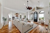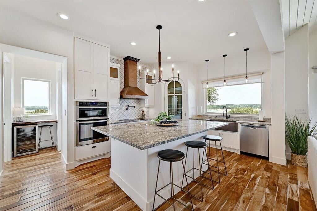 Breathtaking lake views surround you in this stunning multi-generational retreat, where water and sky can be enjoyed from practically every room. Designed for both togetherness and privacy, this home features two full kitchens, two spacious living rooms, and two laundry rooms and even a backhouse with a full bath and mini kitchen —the perfect setup for extended family or guests. Step outside to not one, but two expansive porches, where golden sunsets paint the horizon and invite you to linger a little longer. Inside, natural light and panoramic vistas create a serene backdrop for everyday living. Nestled in a wonderful community known for its tranquil charm, this property offers the perfect balance of relaxation and connection. Whether as a full-time residence or a lakeside getaway, this home is a rare find that truly embraces the beauty of lakeside living.