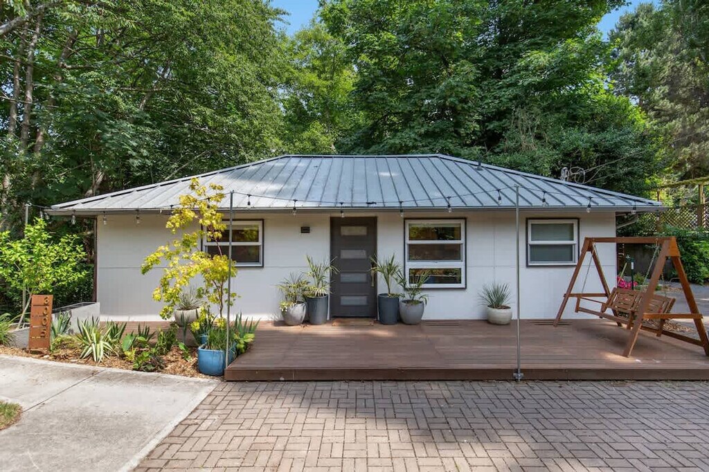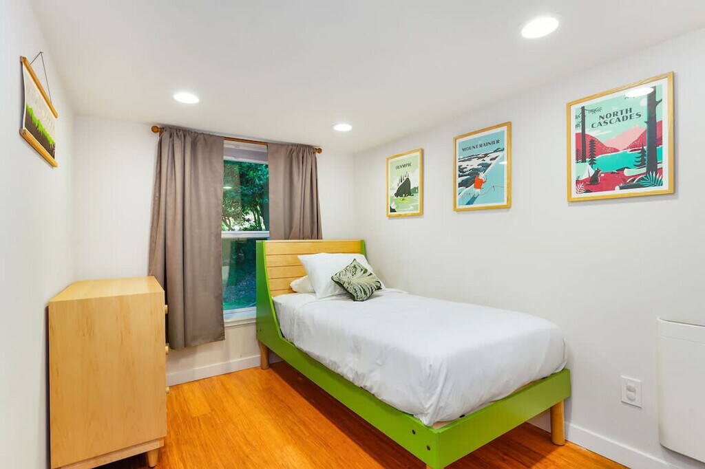 Peaceful, private, and perfectly Seattle. Tucked into a wooded lot near Golden Gardens, this stylish North Beach home offers comfort, character, and room to breathe. With a spacious yard, cozy fire pit, and whimsical treehouse, it’s a favorite for families and longer stays. Tucked into a rare 24,000 square foot wooded lot, this peaceful North Beach retreat offers space, privacy, and modern comfort just minutes from the beach. Whether you're here for family time, work, or a weekend reset, you'll find the perfect balance of city access and natural beauty. The home features a queen bedroom with premium bedding and ample storage, two twin bedrooms perfect for kids or friends, and two full bathrooms stocked with plush towels and premium toiletries. The fully equipped kitchen includes stainless steel appliances and cooking essentials. The open living and dining area is equipped with a Roku TV and Sonos sound system. Additional amenities include a dedicated workspace with desk and natural light, air purifiers throughout the home, and an in-unit washer and dryer. Driveway parking and an EV charger with a NEMA 14-50 outlet are available. Located in North Beach, one of Seattle’s most peaceful residential neighborhoods, just minutes from Ballard’s vibrant energy. Golden Gardens Park and Beach is just 5 minutes away, Ballard Avenue restaurants and shops are 7 minutes away, Ballard Locks and Fish Ladder are 10 minutes away, Woodland Park Zoo is 15 minutes away, Space Needle and Climate Pledge Arena are 20 minutes away, and Pike Place Market is 25 minutes away. Driving is easiest here with parking for two cars in the driveway and free street parking. Ride-sharing services are recommended for convenience, and several bus routes nearby make it easy to get downtown or explore other parts of the city without a car. No parties or events and no smoking of any kind are allowed. Quiet hours are from 10 PM to 8 AM. Guests must be 21 or older and present during the stay, with a maximum occupancy of 4 guests. No pets are allowed. A noise-monitoring device is installed (no audio recording). 75 kWh/day electricity is included, with additional use billed at local rates. Self check-in is available upon arrival. Firearms, glitter, or confetti are not permitted on the property, and commercial filming or photography is prohibited without prior written approval. Includes a dedicated workspace with a desk and natural light, fast Wi-Fi, and Sonos speakers for a comfortable remote work-friendly environment. Registration Number: STR-OPLI-23-000692 [SI]
