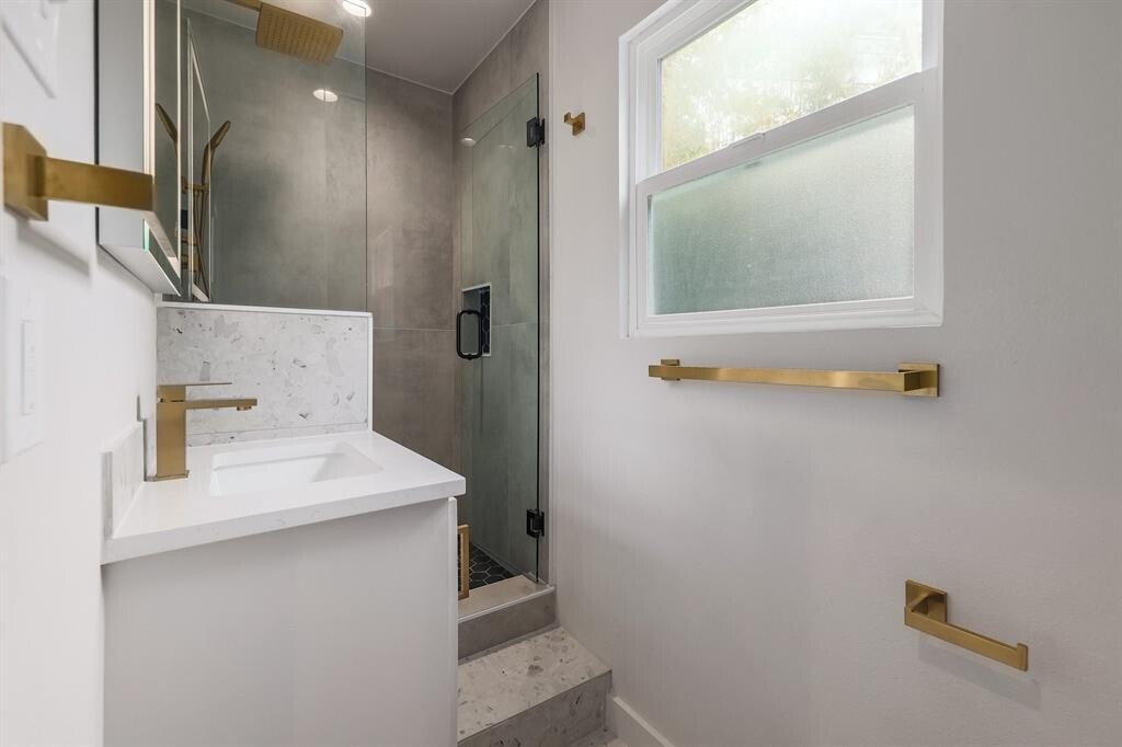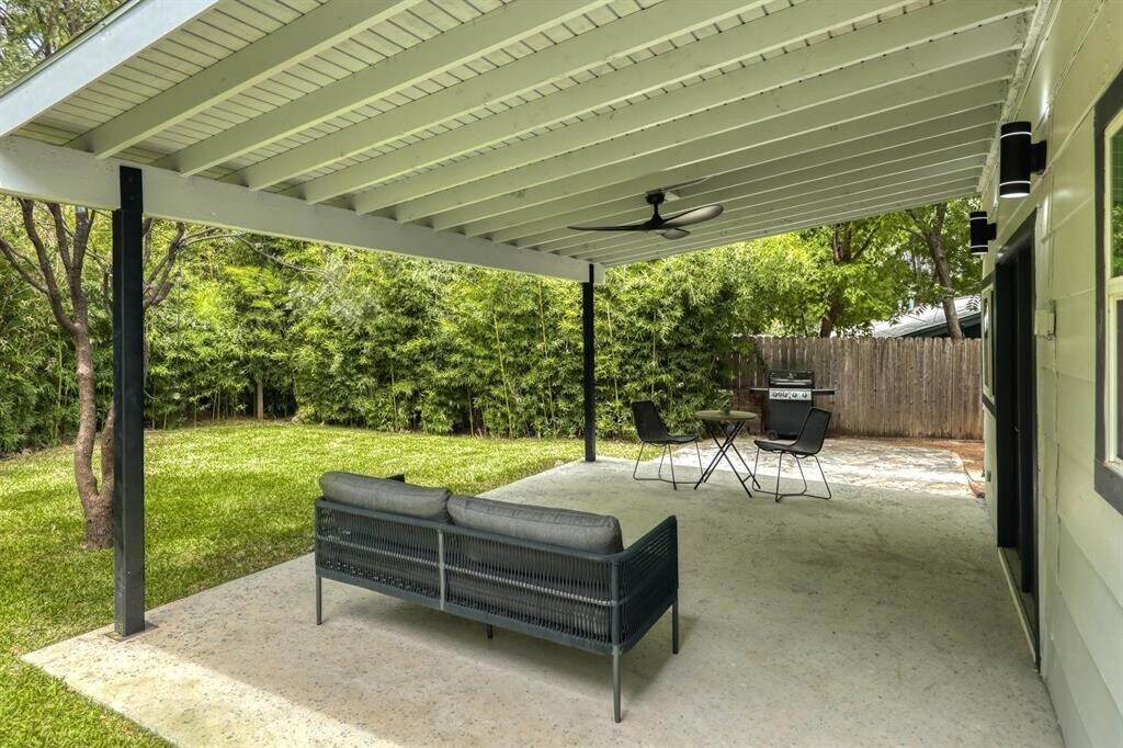 Thoughtfully remodeled 3-bed, 3-bath Craftsman in a quiet pocket of 78704, feeding Zilker/O. Henry/Austin High with a sub-2% tax rate. Set on nearly an 8,000-sq-ft lot, every inch of this home has been updated by Blue Rain Construction. Custom fabrication by @GrowlerDomestics highlights the entry staircase, while the light-filled living space features recessed lighting and skylights. The reimagined kitchen showcases rift white oak cabinetry, quartz counters, terrazzo floors, wine fridge, 36 gas range, and expanded storage. The flexible floor plan includes a full downstairs bath, a Saltillo-floored laundry room, and a versatile flex space ideal for an office, media room, or guest suite. Upstairs, the primary suite offers dual wardrobes and a spa-like bath, complemented by two additional bedrooms and a striking hall bath. Outdoors, enjoy a rebuilt patio, fresh sod, and bamboo landscaping that provides exceptional privacy." MLS ID 6748016