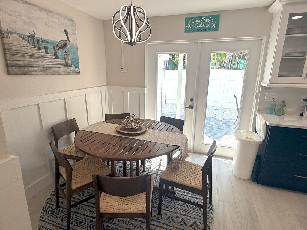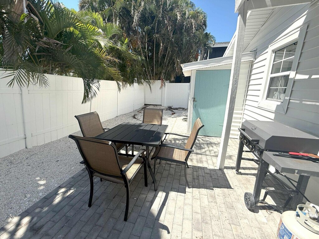 Feel at home in this charming 3-bedroom, 2-bathroom beach cottage in a perfect location, just one block from the beach. This impeccable home offers comfort with a fully stocked kitchen, outdoor space, beach gear, and corn hole. The kitchen features elegant appliances, pots, pans, dishware, a dishwasher, and a drip coffee maker. There is a spacious living room with a large Smart TV, a dining space, outdoor seating, and a propane grill. Beach gear and beach towels are provided. Plenty of parking is available, with space for a boat. Pets are welcome with a fee paid prior to your stay. Conveniently located close to shops, restaurants, and the Anna Maria Island trolley stop, this home offers easy access to everything the island has to offer. It's also close to the beach, a grocery store, a pharmacy, and public transportation. Quiet hours are between 10:00 PM and 7:00 AM. Pets must be approved prior to your stay and pet fee paid. No more than 2 dogs are allowed, and excessive shedding or failure to clean up after pets in the yard can result in additional fees. No cats are allowed. You must follow the city noise ordinance. Pet mess or damage can result in additional fees being charged. [SI]