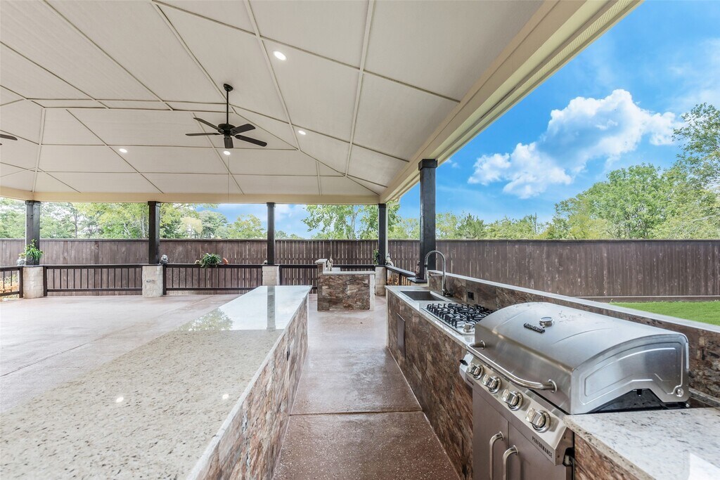 A nice 3-bedroom,2.5-bathroom ranch house is ready for a move in. It sits on a 1.5-acre lot with covered garage,multiple open parking spaces,surrounded by a fence with an automatic gate. You can bring your horses,RV,trailers,and trucks. The property includes a large pavilion with an outdoor kitchen and bar for hosting events. There's a kids' park and a basketball court,and you can enhance the courtyard with your own pergola and gazebo. The property is conveniently close to Fulshear Downtown,easily accessible from I-10 and West Park,and is in a peaceful,enclosed neighborhood with lots of green trees. There are no restrictions on the property,so you might be able to use it for different purposes like a medical office,church,school,business,or daycare,depending on local rules. Additional 3.5 Acres available if needed for additional price MLS# 21219788