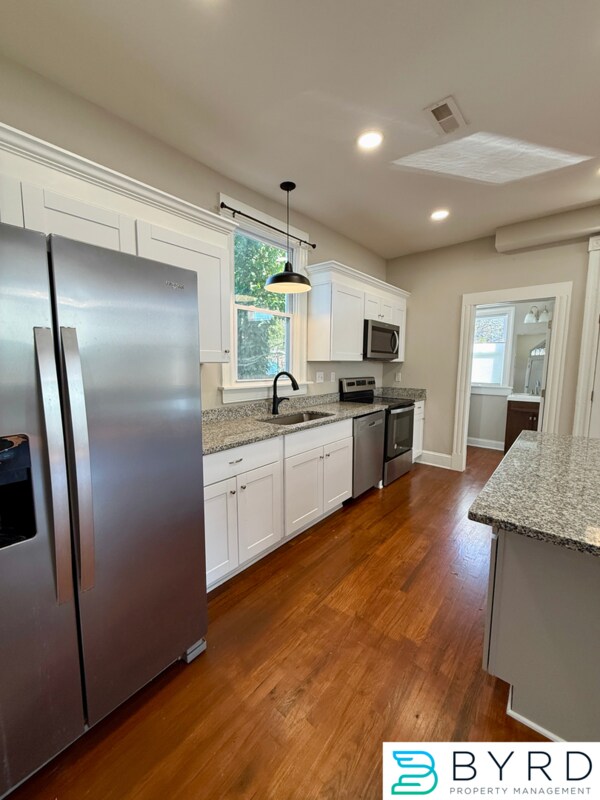 Welcome to 3007 3rd Ave, a beautifully designed 3-bedroom, 2.5-bath home offering 2,036 square feet of open, light-filled living space in the heart of Richmond. The first floor features a massive open-concept layout, seamlessly combining the kitchen, living room, dining area, and foyer into one expansive space—perfect for entertaining or everyday living. The kitchen is well-appointed with granite countertops, stainless steel appliances, ample cabinetry, recessed lighting, and a garbage disposal. A half bath on the main level adds extra convenience for guests. From the kitchen, step directly outside to a covered porch overlooking the backyard, ideal for relaxing or hosting gatherings. Upstairs, the home continues to impress with a second-floor laundry room featuring a convenient 2-in-1 washer and dryer, keeping laundry close to the bedrooms and out of the main living areas. The primary bedroom suite offers a private retreat with an ensuite full bath featuring a double vanity and stand-up shower, plus a walk-in closet with its own window, providing excellent natural light. Just off the primary bedroom, enjoy a second-floor balcony, perfect for morning coffee, evening relaxation, or simply watching the world go by. Two additional bedrooms and a second full bath complete the upper level. The entire home features hardwood and tile flooring throughout, delivering a clean, elegant look that’s also low-maintenance, durable, and easy to keep clean — no carpet anywhere. Outside, the home features a large, partially fenced backyard and a private driveway for off-street parking. Conveniently located near I-64 and I-95, this home is ideal for commuters and frequent travelers. You’re also less than a mile from the growing selection of local restaurants and eateries along Brookland Park Boulevard, with Food Lion less than 2 miles away for everyday shopping. This home offers space, style, and location—an excellent opportunity to enjoy modern living with thoughtful comforts throughout.