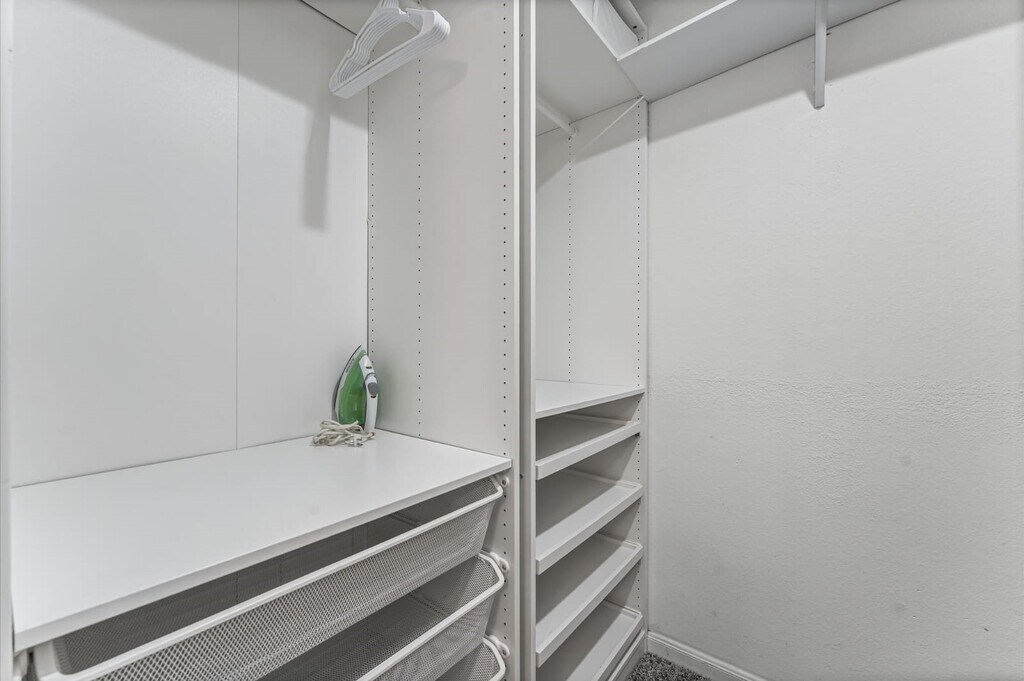 The house has foam flooring and carpet in the bedrooms. There's a split air conditioner in the garage. The laundry room has a modular closet. The master bedroom and one of the other bedrooms have storage space. Outside,there's a covered porch and direct access to the community walkway. The living room has a TV unit,a TV entertainment center. The paint in the master bedroom is washable. It has a shower and a bathtub. MLS# 95449955