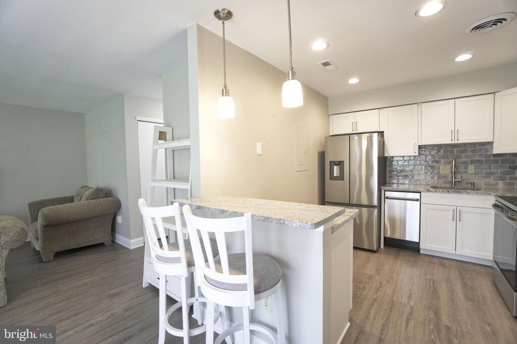 Welcome to this beautifully remodeled and fully upgraded townhome featuring 2 spacious bedrooms and 1.5 bathrooms, located in the desirable Montgomery Place community. This home offers access to resort-style amenities, including a community swimming pool, tennis court, and fitness center—all just steps from your door. The owner pays the HOA fee, which includes lawn care, exterior maintenance, building insurance, and snow removal right to your front door for added convenience. Inside, the home features brand-new waterproof laminate wood flooring throughout the first floor, paired with oversized windows that create a bright and open atmosphere. The spacious living and dining areas flow seamlessly to a private patio—perfect for outdoor dining and barbecues. An outdoor storage closet adds space for bikes and seasonal gear. The newly renovated eat-in kitchen offers granite countertops, ceramic tile flooring, and new stainless steel appliances. A powder room, coat closet, and laundry area complete the main level. Upstairs, you'll find carpeted bedrooms for added comfort, including a sun-filled primary bedroom with a generous walk-in closet, a roomy second bedroom, and a full hall bath with double vanity. Conveniently located near premier shopping and with easy access to Route 309, the Turnpike, and the Blue Route, this move-in ready home combines comfort, style, and convenience. Couch, TV stand, computer chair, and shelf can remain with the property if desired.