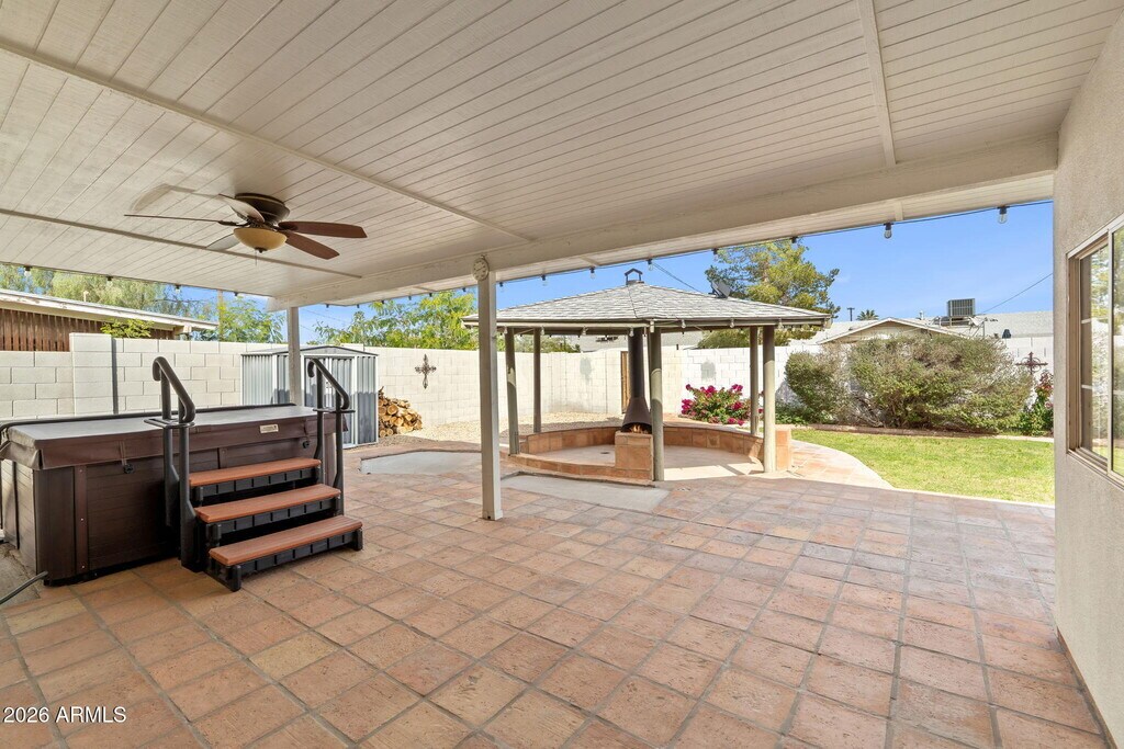Welcome home to this pristine beauty full of charm,perfectly nestled in the heart of South Scottsdale! With newer roof,fresh interior and exterior paint,this property is ready for you to move in. Step inside to find beautiful reclaimed wood accents,ceramic tile throughout the main living area. New carpet and a spacious family room just off the kitchen and dining area --perfect for relaxing or entertaining. The flexible floor plan offers 3 comfortable bedrooms plus a den and an office,ideal for working from home and/or creating your own bonus space. The kitchen is both stylish and functional,featuring warm knotty pine cabinets,slab granite countertops,and accent lighting above and below the cabinetry. LG stainless steel appliances,including a dishwasher,fridge and a gas range. French doors with sidelights lead from the dining area to a large covered patio and inviting backyard. You'll love the hot tub and impressive gazebo complete with a sunken conversation pit and outdoor fireplace! An amazing space to gather and enjoy Arizona's beautiful weather. The location truly can't be beat! Within minutes from the 101 freeway,Old Town Scottsdale's shopping and dining,spring training ballparks,and so much more. This is a wonderful opportunity to enjoy comfort,charm,and convenience all in one place!