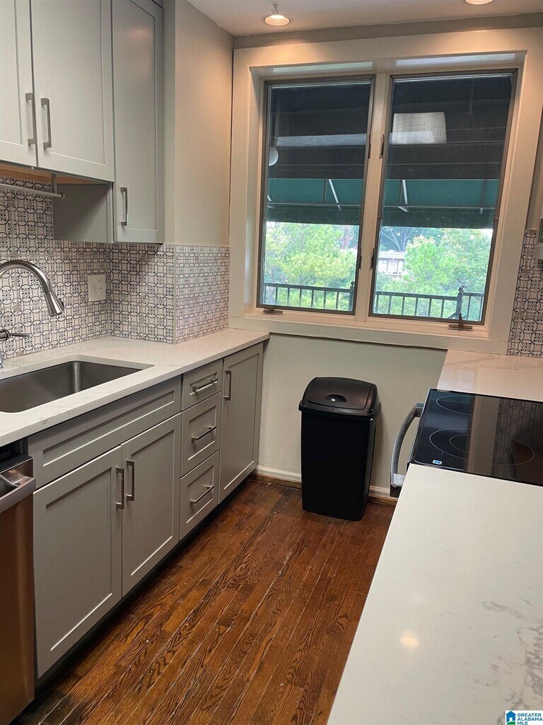 The historic Avalon condominiums have always been a favorite for its classic 1925 Tudor style and fabulous location in the heart of Highland Park close to parks, restaurants, Highland Golf course and UAB. This 3rd floor corner unit boasts 3 bedrooms, 2 full baths, 9 ft. ceilings, beautiful hardwoods and moldings throughout the spacious living interiors that are flooded with natural light. The kitchen has been recently updated with new cabinetry, stainless appliances, quartz countertops and new backsplash. The All in One" stacked washer dryer unit, located in the kitchen closet, remains! Multiple large closet spaces throughout and an additional storage unit, perfect for bikes and large items, on the premises. Enjoy the top floor view from the covered balcony with back stairs to the off street parking in the rear of the building (Residents receive 2 parking passes & a guest pass.) You'll love coming home to The Avalon with its meticulously maintained grounds and beautiful plantings"