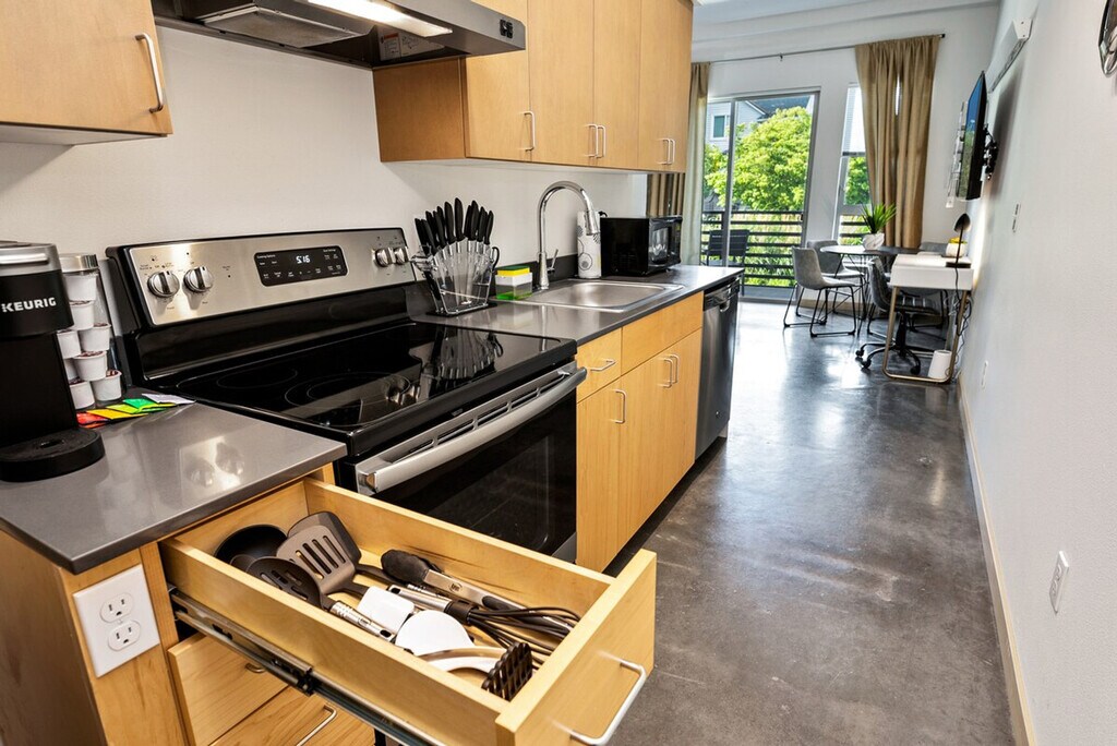 The advertised rate of $3,888/month is the lowest available price, based on a 30 day(s) stay with a move-in date of March 2, 2026. Rates vary depending on the duration of stay, season, and other parameters. For exact pricing and additional pricing components, please visit our website and enter your desired move-in and move-out dates. The rate is applicable when billed upfront; it can be higher if billed in multiple payments. Feel at home in this stylish apartment, perfect for group trips. All of Beacon Hill's attractions are within walking distance. This newly updated apartment includes comfortable furnishings, a rooftop dining area with a barbecue grill, and views of the Olympic, Cascade, and Rainer mountains. It features fast Wi-Fi, streaming TV services, a fully equipped kitchen, and a washer and dryer. The kitchen is fully equipped with pots, pans, dishes, utensils, a Keurig, salt and pepper, coffee, tea, creamer, and sugar. Starter consumables such as bathroom toiletries, toilet paper, paper towels, and coffee are provided. Free street parking is typically available within a block or two and a parking pass is provided. Pets are welcome, message for information on pet fees and breed restrictions set by the property. This centrally located apartment boasts easy access to the Link Light Rail, which will transport you to and from the airport, in addition to some of Seattle's other great neighborhoods and attractions. With a walk score of 85, this area is very walkable. There are a lot of amazing bars, restaurants, coffee shops, and parks all within a few minutes' walk or drive. This apartment is 4.6 miles to the Space Needle, 3.2 miles to Pike Place Market, 2.6 miles to Downtown Seattle, 2.1 miles to Lumen Field (Seahawks)/T-Mobile Park (Mariners), 7.2 miles to the University of Washington, and 12.5 miles to the SEA Airport. This is a residential community, and it is important that you respect the property rules and the other residents during your stay. Includes a dedicated workspace. [SI]