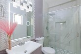 Stunning Remodeled Home boasts over $85K in upgrades, featuring designer touches all around. This home includes a beautifully remodeled kitchen with calacatta quartz countertops, designer backsplashes, modern sink, stainless steel appliances, & elegantly renovated bathrooms with exquisite tile, rainfall showerheads, new tub, decorative mirrors & lights, new vanity, marble flooring & smart toilet. More upgrades than one can list. The poolside oasis & large backyard has been exquisitely designed to allow you to relax in beauty and tranquility. If you like to live in a beautiful house and care about details, this one is for you. Crystal lighting, modern fans, mirrored doors & chandeliers add to the home's unique and distinctive grandeur. 4 spacious bedrooms, new laminate flooring, newly painted, new energy efficient windows, upgraded laundry & more. Welcome home