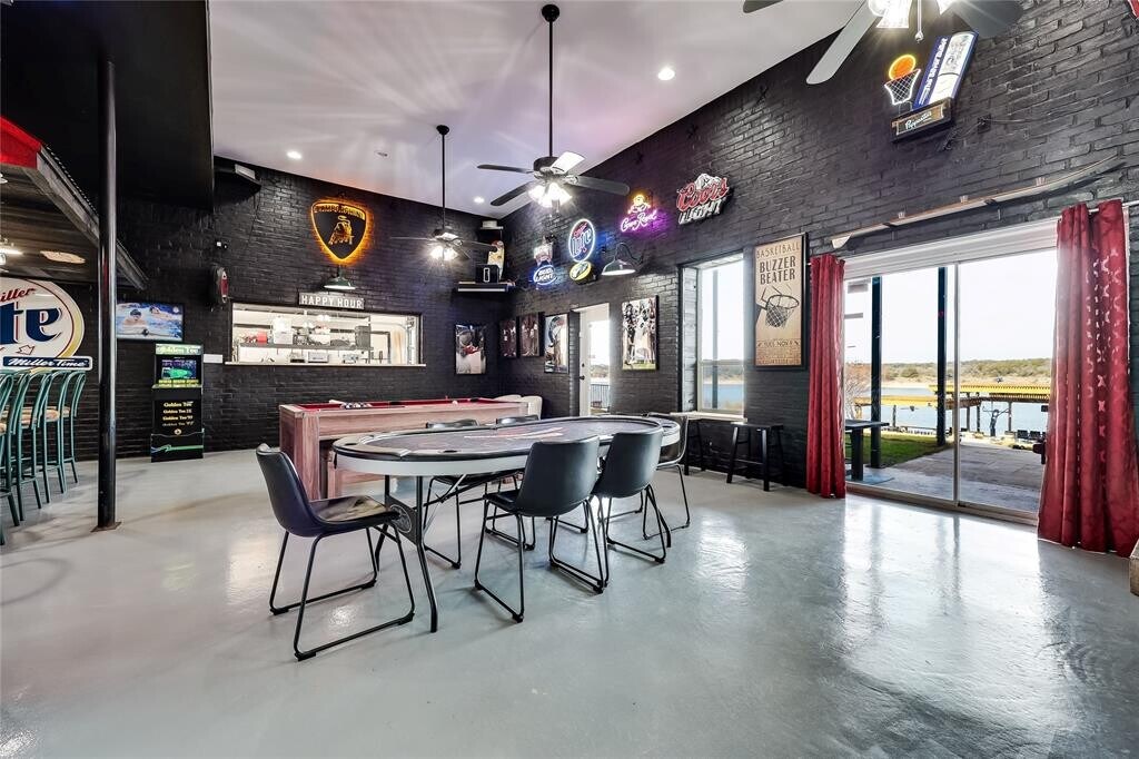 Deep water on main channel! Fully furnished. 2 Boat slips. The house is a dual level, with steps going up to the main level from the street. Completely renovated, from quartz counter tops, to high end vinyl flooring throughout the social areas. Main bedroom plus two guest bedrooms in main living area. Main bedroom has amazing views of the lake with direct access door to the upper deck. Kitchen is open to the family room. Large dining area with direct access to the deck. Outdoor dining space with crazy views of the lake. Downstairs is the game room perfect to get together and have fun. Enjoy all the amenities which include Foosball table, air hockey table, pool table, karaoke stage, arcade, darts, axe throwing, table games, and more. The bunk room has two bunk beds. The room connects to a private full bath shared with the game room through a different access. The bar is fully is ready with glasses, disposable cups, refrigerator, microwave, ice chest. Outdoor built in kitchen with a 36 Blackstone Griddle, a Kamado Joe, and a dine bar. In between the house and the lake is The Pavillion, with a built in wood burning fireplace, Pit Boss Grill, seating for everyone. Past the Pavilion is the pickle ball/sports court, and a wood burning Fire-Pit. On The Dock enjoy kayaks, stand up paddle boards, TV to connect your consoles or watch local network channels." MLS ID 2531806