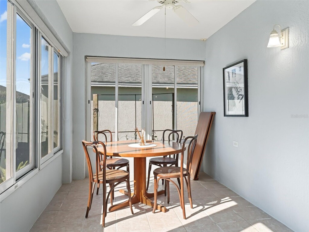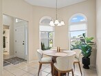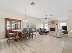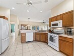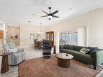 RENT BEFORE YOU BUY!!! This 3-bedroom, 2-bathroom home in The Villages includes a gas golf cart and is designed for function and convenience. The kitchen has a gas stove and a table for four. The dining room seats six, and the living room includes comfortable seating and a Smart TV. The enclosed Florida room offers a quiet space for coffee or reading. The master bedroom includes a king-size bed, ensuite with double sinks, a glass walk-in shower, and a large closet. Two guest bedrooms have queen beds and share a bathroom with a tub/shower combo. An indoor laundry room is also included. Nearby, access the Tall Trees Adult Pool, El Santiago Family Pool, and El Santiago and Hacienda Hills 9-hole executive golf courses. Evenings features live music and happy hour at Lake Sumter Landing and Spanish Springs. July-October: $2790/month - November: $3450 - December: $3720 (all plus taxes & fees) PLEASE CALL FOR PEAK SEASON(JAN-MAR) & WEEKLY RATES