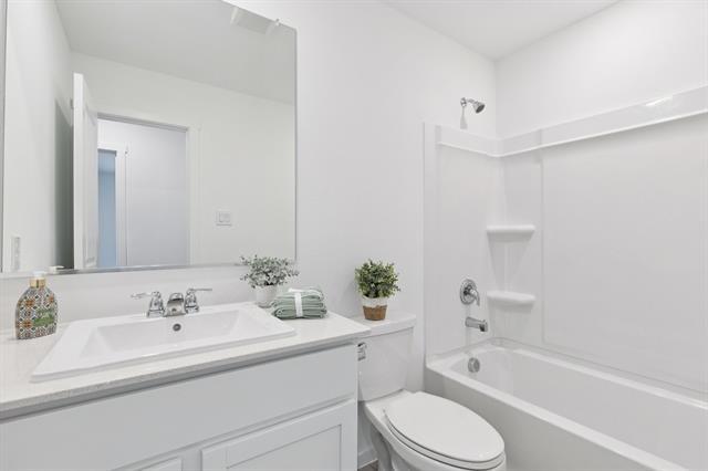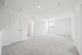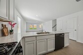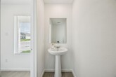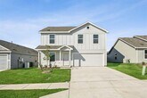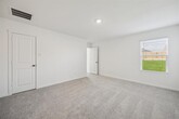Bright and airy new construction 4-bedroom, 2.5-bath home offers 1,891 sq. ft. of thoughtfully designed living space. The main floor features an open layout seamlessly connecting the kitchen, dining area, and living room. The kitchen comes equipped with a refrigerator, while the utility room includes a full-size washer and dryer for added convenience. The primary suite, tucked away on the main level, boasts a private bath and walk-in closet. A powder room completes the downstairs layout. Upstairs, enjoy a spacious game room and three secondary bedrooms, perfect for family or guests. Outside, an oversized yard provides ample space for relaxation and play. Located in a growing community with resort-style amenities including a pool, playground, trails, parks, and more on the way this home blends comfort, style, and convenience.