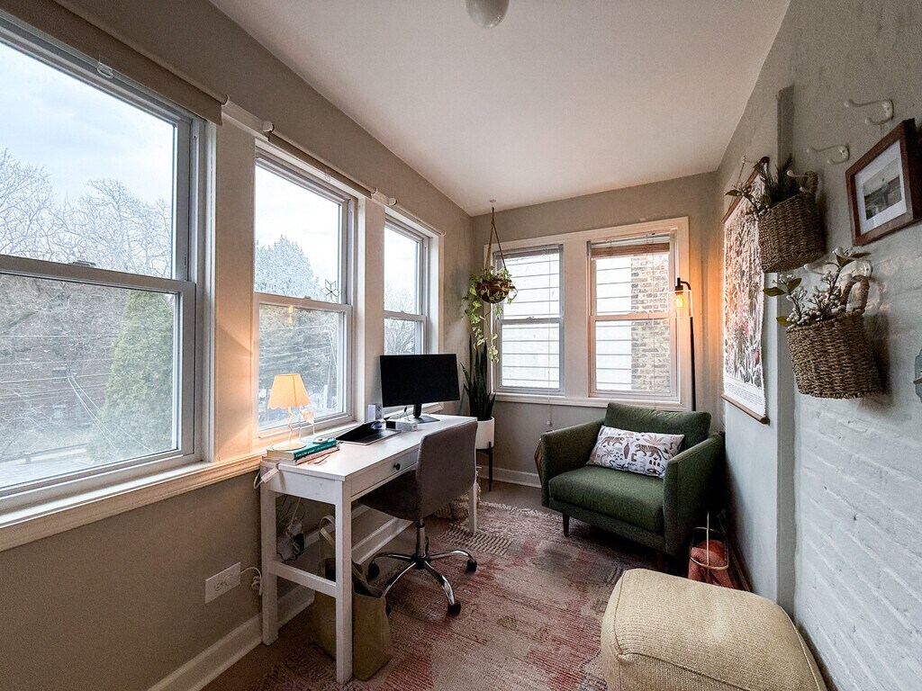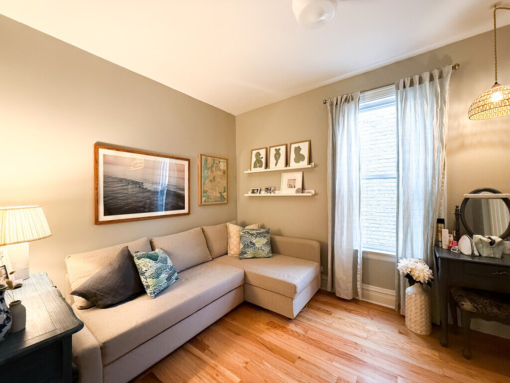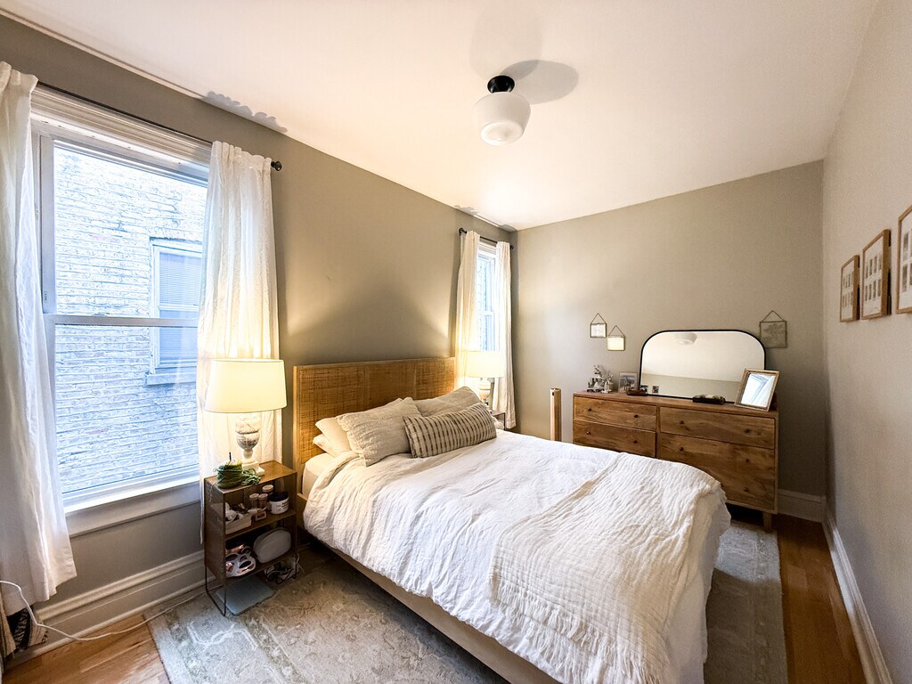 Property Id: 916948 *AVAILABLE MAY 1, 2026* Beautiful second floor of oversized Greystone 2 flat near Logan Square CTA Blue Line, numerous restaurants, and near 90/94. Updated unit has three bedrooms PLUS DEN off the kitchen, central air/heat, hardwood floors, kitchen with stainless steel appliances (new fridge and microwave in 2023!) and granite counter tops. Common FREE laundry in the basement. Easy street parking in a no-permit zone. Lots of light in this south-facing unit. The primary bedroom easily fits a king bed, second bedroom easily fits a queen bed, and the third bedroom makes a great office/nursery/workout room. The den off the kitchen is another great space to entertain or work. Updates to the property from 2023-2026 include: New high-efficiency furnace and complete duct cleaning (2023); GoogleNest thermostat in unit (2023); new fridge and microwave in unit (2024); basement fully waterproofed (2024); washing machine (2026); smart locks (2026); landscaping updates (ongoing). Rent includes: Water, scavenge, & yard care. Building is owner-occupied. 5 min. walk to Small Bar 5 min. walk to Quality Time 10 min. walk to Milli by Metric 13 min. walk to Logan Square CTA Blue Line Station $500 Move In Fee (non-refundable) Cats allowed; Dogs under 40 pounds allowed. BEFORE APPLYING, ALL INTERESTED PARTIES ARE REQUESTED TO COMPLETE A PRE-SCREENING: