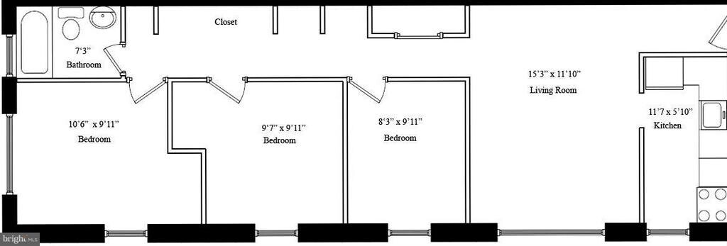 - 2BR, 1BA