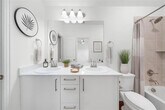 The Cedar floorplan, 1,629 sq ft, offers 3 bedrooms, with 2 bathrooms, an open concept family, dining, kitchen area, primary suite offers an en suite bath with separate vanities and two walk in closets! Each home offers luxury vinyl plank, easy care floors, granite style-quartz counter tops, European style cabinetry, new appliances and a full size utility room. The home has an adorable covered porch, two car garage and privately fenced yard. Enjoy maintenance free lawncare, you only need to maintain the fenced area. Photos are representative of this floorplan, not actual.