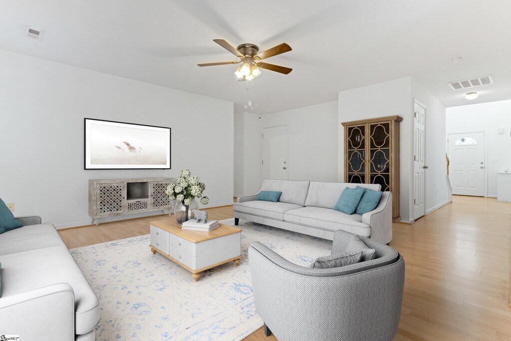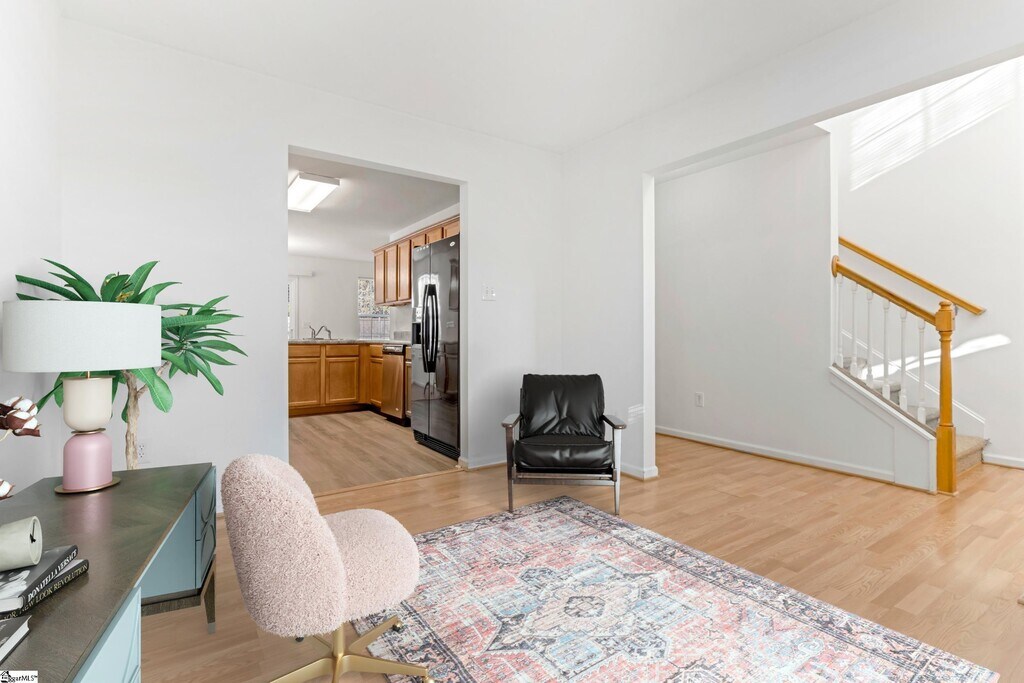 Welcome home to this charming 4-bed, 2.5-bath residence perfectly situated for easy commuting and close to plenty of shopping and everyday conveniences. The spacious main living area offers an open, airy layout-ideal for gathering, relaxing, and entertaining. You have a space for an office and a small bonus or play room on the main level. Step outside to enjoy a peaceful, fenced backyard that provides both privacy and a serene outdoor retreat. All bedrooms are thoughtfully located upstairs, offering a quiet escape tucked away from the main living spaces.